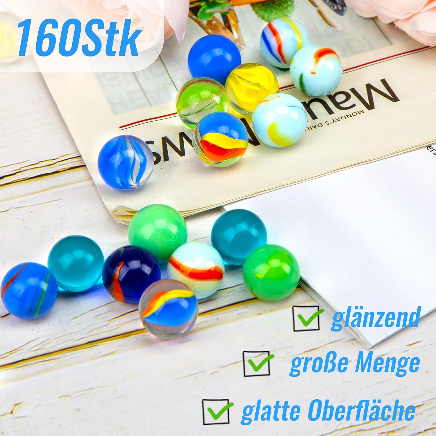 Divertimento per bambini: con 160 biglie di vetro di alta qualità (16 mm di diametro), con lavorazione sicura, molto divertente per i bambini. Ideale per giochi di biglie o progetti creativi di artigianato Decorazione creativa: il design a trama unica in colori misti mormoriano sono perfetti per progetti fai da te. Utilizzali per riempire vasi, come decorazione da tavolo o per aggiungere un tocco artistico alla tua casa Aiutanti fai da te: che si tratti di scrapbooking, artigianato o come accessorio fotografico, le biglie per bambini offrono infinite possibilità creative e sono un must per qualsiasi progetto artistico Decorazione dell'acquario: le biglie di vetro riflettono la luce meravigliosamente creando un effetto luminoso. Sono ideali come decorazione per acquari o piscine di pesci e aumentano l'attrattiva visiva Confezione regalo: aggiungi un tocco speciale alla tua confezione regalo utilizzando le biglie di vetro colorate come elementi decorativi. Dona un tocco in più e rendono ogni regalo ancora più speciale