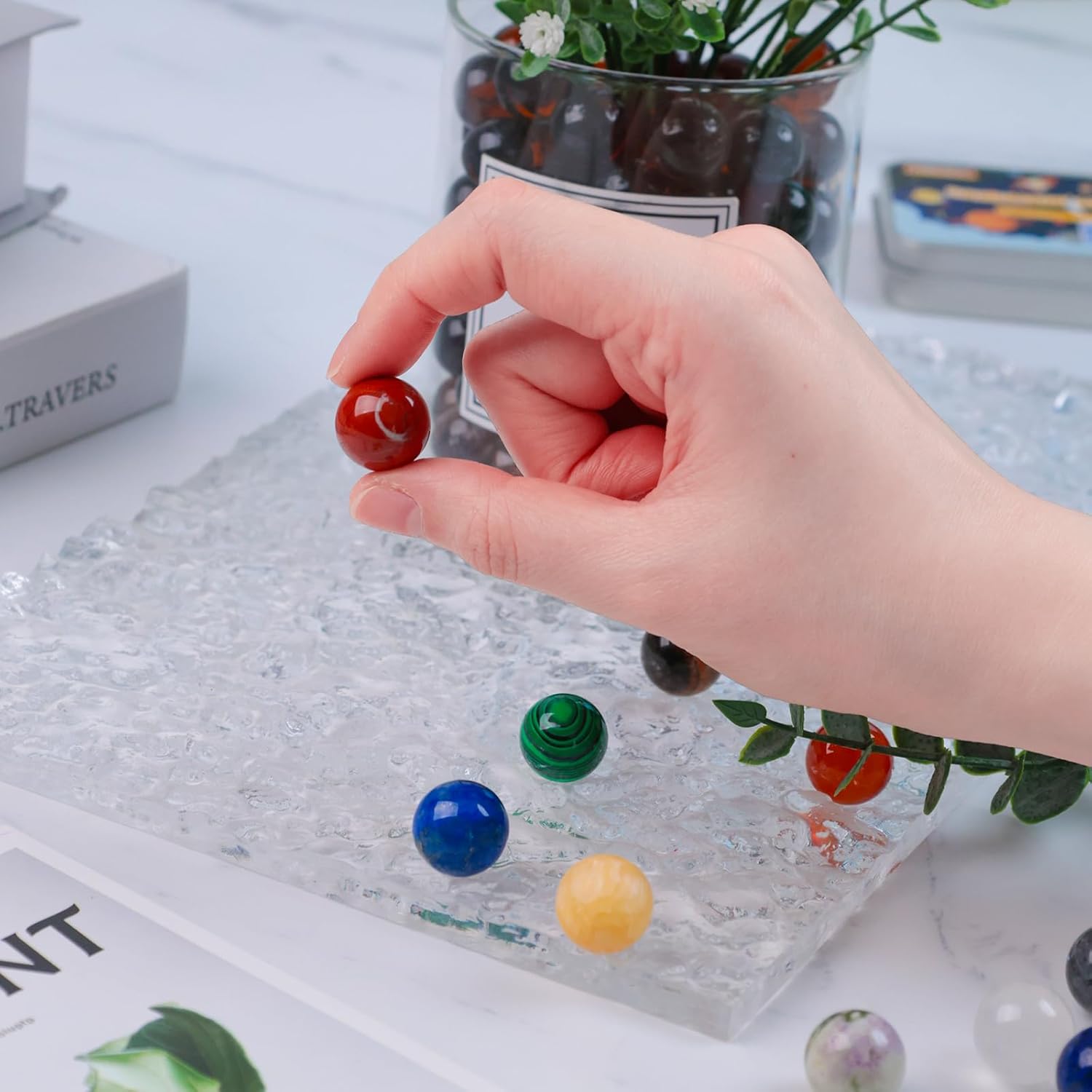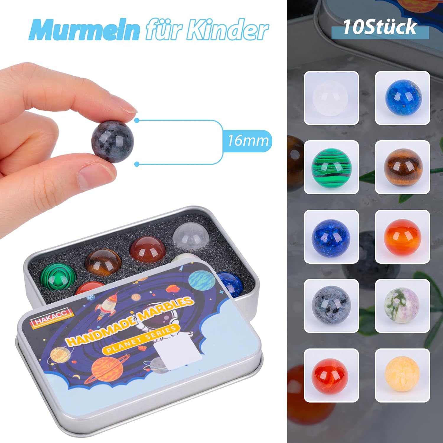 INCLUSO NELLA CONFEZIONE - Circa 10 biglie colorate per bambini in diversi stili. ALTA QUALITÀ - Realizzate con materiali di alta qualità, le nostre biglie sono resistenti, robuste e presentano una finitura liscia e di alta qualità. I marmi sono durevoli e ad alta resistenza, garantendo un uso duraturo. VARIETÀ DI STILI – I nostri marmi sono disponibili in una varietà di colori brillanti e vivaci e presentano un aspetto lucido e scintillante. Ideale per giocare e decorare. REGALO PERFETTO - Le nostre biglie sono progettate per sviluppare le capacità motorie, l'immaginazione e la creatività dei bambini. Con il loro numero generoso, una varietà di colori vivaci e uno squisito design della confezione in banda stagnata, le biglie di vetro sono un regalo premuroso per parenti e amici. USI VERSATILI - Le nostre biglie di vetro assortite sono perfette per vari giochi di biglie, tra cui la corsa delle biglie e il tradizionale gioco delle biglie. Sono ottimi anche per decorare case, giardini e acquari.