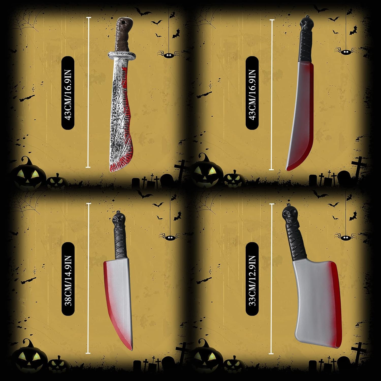 🔪Confezione da 4 – Adatto per adulti/bambini ❌Un'arma realistica: il nostro robusto coltello giocattolo in plastica dura misura 33-43 cm e sembra molto realistico con un design schizzato di sangue. Questo 4 coltello finto è assolutamente sicuro e innocuo. 🪓Aratterizzato da un motivo di sangue essiccato sulla lama, questo gli conferisce un aspetto più autentico, gli accessori horror ideali. 🩸L'arma di Halloween perfetta per finire il tuo costume quest'anno, scherzi il tuo amico, diventa un classico killer o gioca uno zombie spaventoso: questo coltello da costume può essere utilizzato in diversi modi e garantisce un divertimento senza fine. 🎃Perfetto per travestimenti di Halloween.