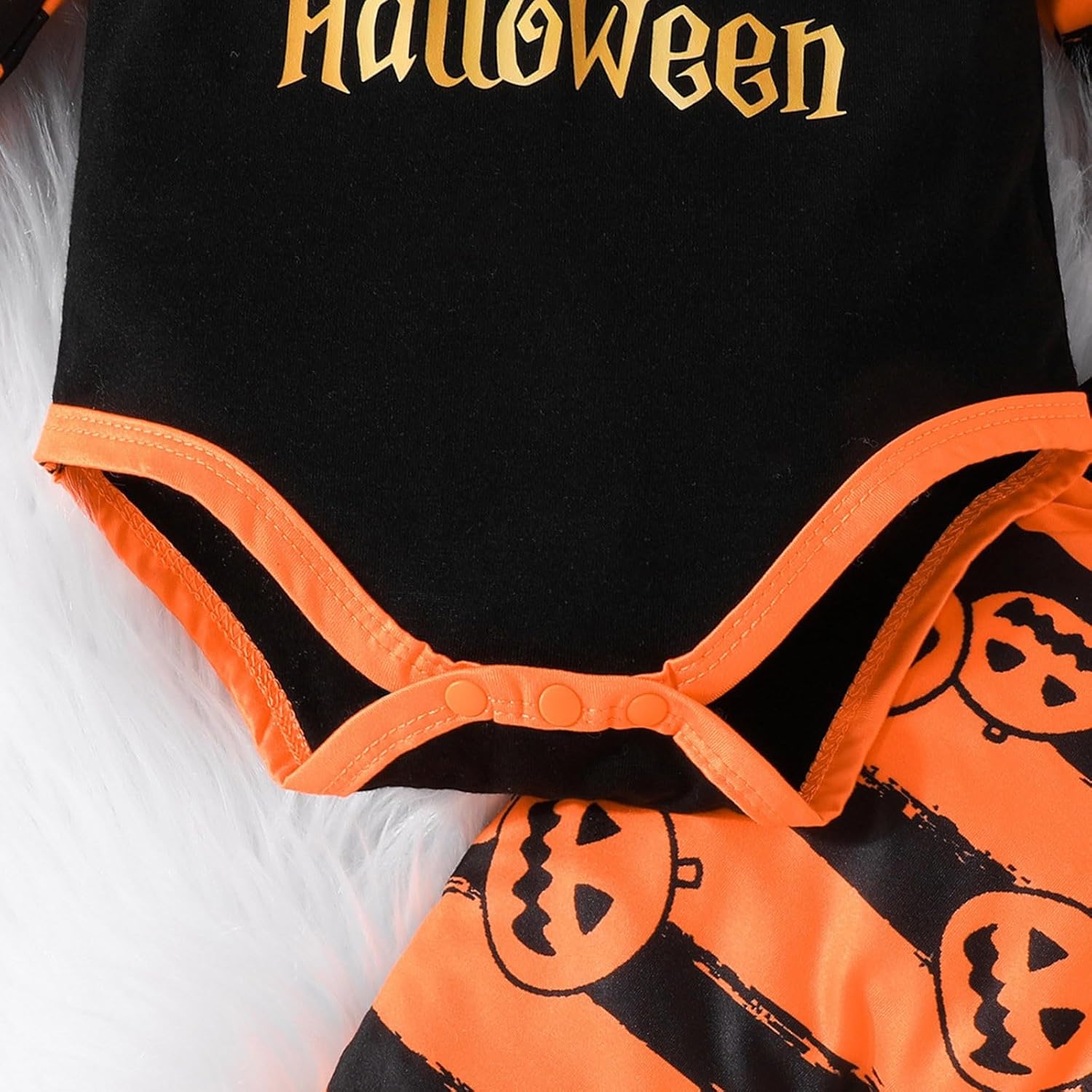 Halloween Costume Zucca Bimbo Completo Pumpkin Neonati Pagliaccetto Bambina Ragazze Zucca da Carnevale Costumi Halloween 0-24mesi Cosplay Costume Bambino Vestito Body Tutina Bimbo Invernali
