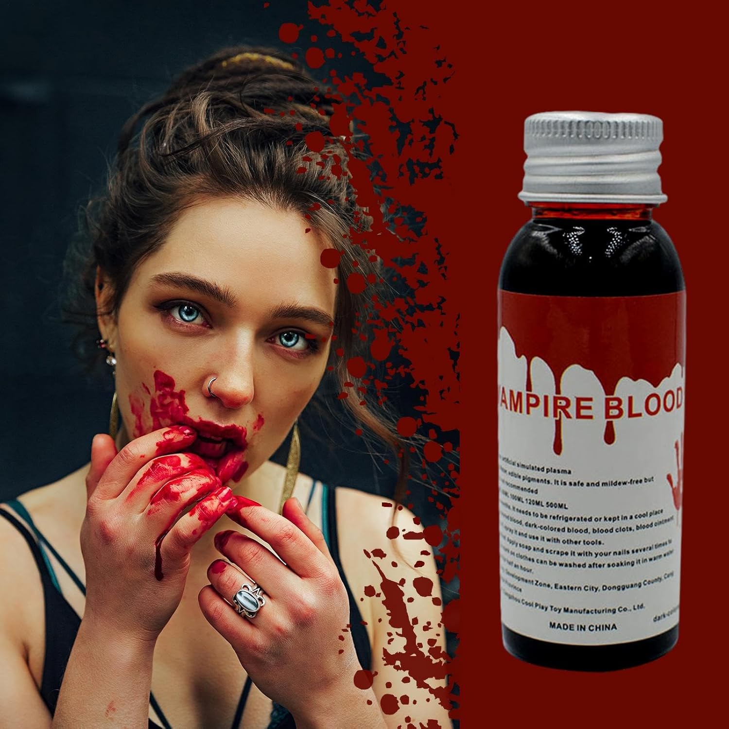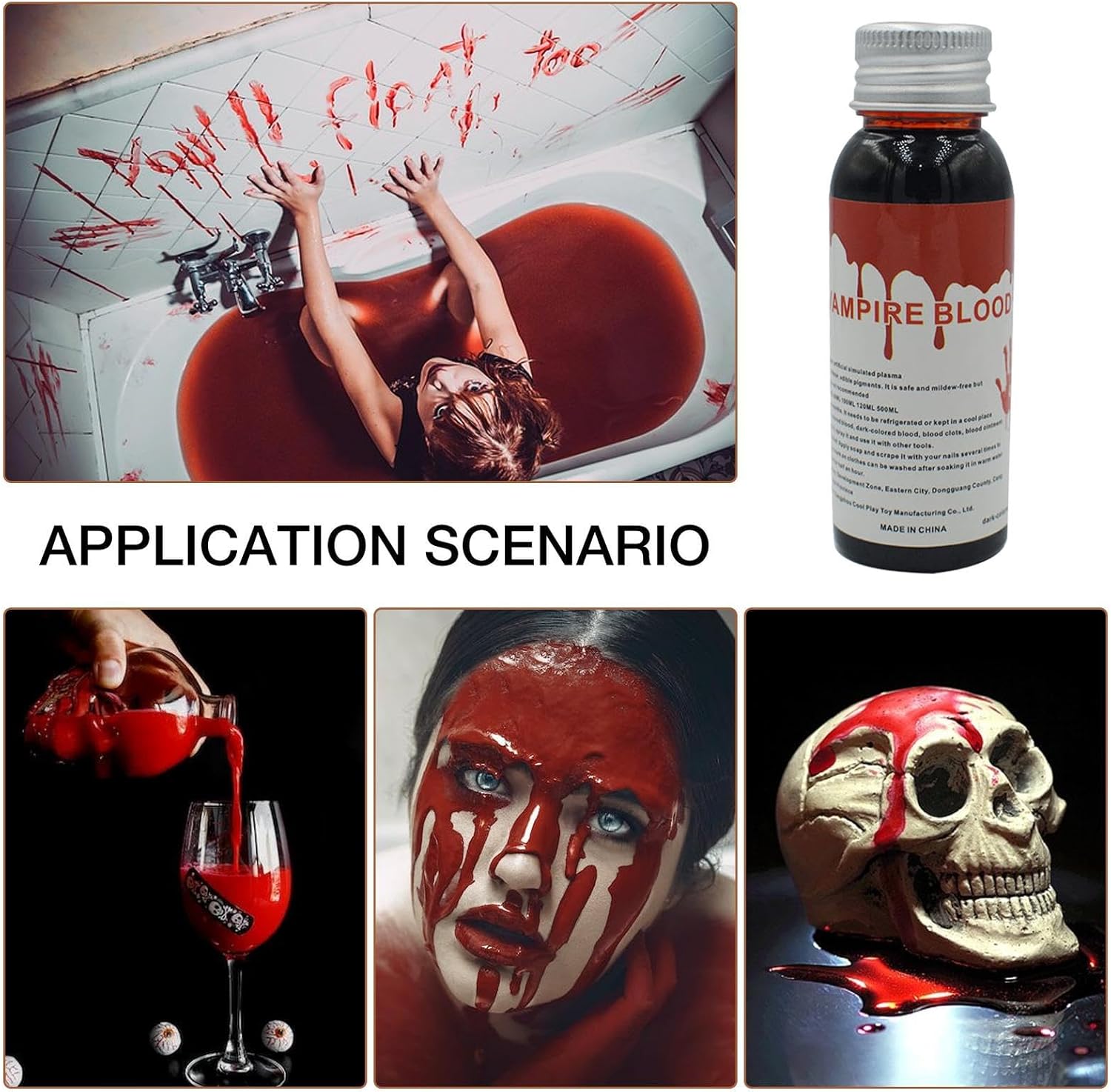 Realistic Blood Effect for Horror Makeup – Designed to mimic the appearance and texture of real blood, this fake liquid blood creates drammatic, gory effects for Halloween, cosplay, and theatrical performance Washable & Easy to Clean – Made with skin-safe, water based ingredients, this artificial blood is easy to remove from skin and fabric, make it perfect for costumes, props, and Drips, Smears & Clots Like Real Blood – The thick yet flowy consistency allows for versatile application whether you want dripping wounds, smeared , or dried blood effects for an authentic horror look Perfect for Costumes & Special FX – Ideal for creating vampire, zombie, werewolf, or haunted bride makeup looks, as well as adding realistic blood splatter to clothing, maschere, or horror props Safe & Formula – Crafted with skin-friendly, non-irritating ingredients, this fake blood is safe for direct application on skin and washes off easily with soap and water