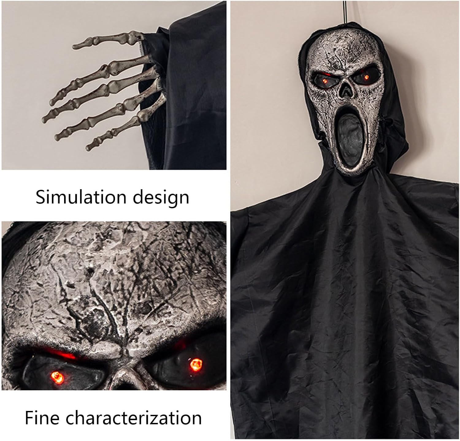 Appende queste figure spettrali al soffitto, adorna porte, pareti, alberi o portico e crea un'atmosfera inquietante per la tua festa di Halloween Costruiti con pregevole fattura e materiali in tessuto, sono progettati per durare nel tempo. Caratterizzati da complessi componenti elettronici, creano un'atmosfera realistica che sicuramente impressionerà Trasforma la tua festa di Halloween in un incontro spaventoso con queste decorazioni fantasma ispirate all'orrore. I loro occhi si illuminano di rosso e la voce urla inrisposta al rumore, fornendo ulteriore strato di terrore al tuo set-up Sorprendi la tua famiglia e con queste decorazioni fantasma di Halloween che esprimono i tuoi amori e la tua cura. Che si tratti di vacanze, compleanni o qualsiasi altra occasione, questi graziosi ornamenti faranno sorridere e apprezzeranno la tua premura Sia che tu voglia creare un'atmosfera per la tua festa di Halloween, o aggiungere divertimento ai tuoi oggetti di scena fotografici, stanza dei segreti, scuola o casa, queste decorazioni fantasma sono per te