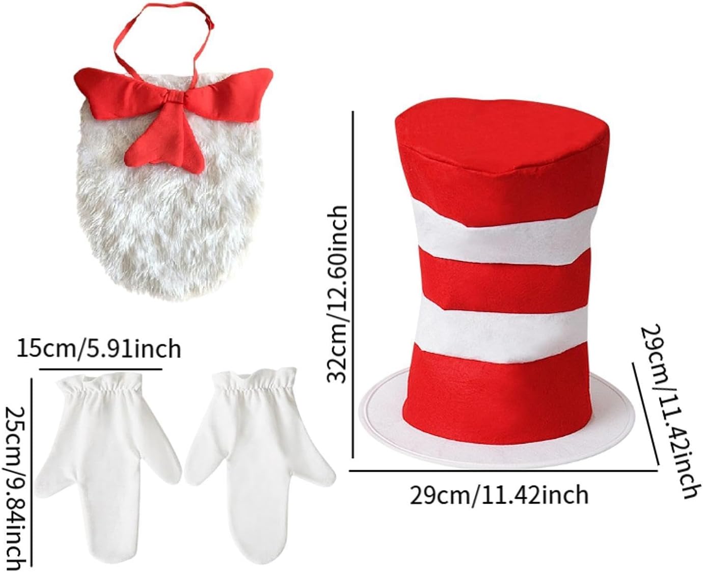 【Dimensioni del prodotto】: i guanti bianchi misurano 25 cmx15 cmx1 cm/9,84 inchx5.91 inchx0,39 pollici, misura 29 cmx29 cmx32 cm/11,42 inchx11,42 pollici di 120 pollici con una parte di 5 cm/1,97 e il bro cm/12,99 inchx5,91 pollici 【Materiale premium】: Questo set di accessori per costumi di cosplay di Halloween è realizzato in poliestere di qualità, che è leggero, comodo per l'usura 【Il pacchetto include】: il pacchetto viene fornito con 1 paio di guanti bianchi, cappello a cilindro da 1 pezzo e 1 , tutto il necessario per completare il tuo costume o il tuo look cosplay 【Caratteristica】: ogni pezzo nel set è meticolosamente cucito con un adeguato per garantire una buona sensazione e una durata 【Adatto per varie occasioni】: non per le feste di Halloween, ma anche per le vacanze, il Ringraziamento, la Pasqua, i compleanni e altro ancora