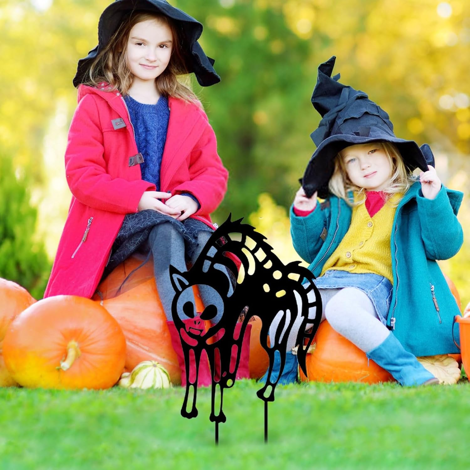 Halloween scheletro gatto giardino paletto metallo arte decorativo cortile inserto per giardino (A, 33 cm)