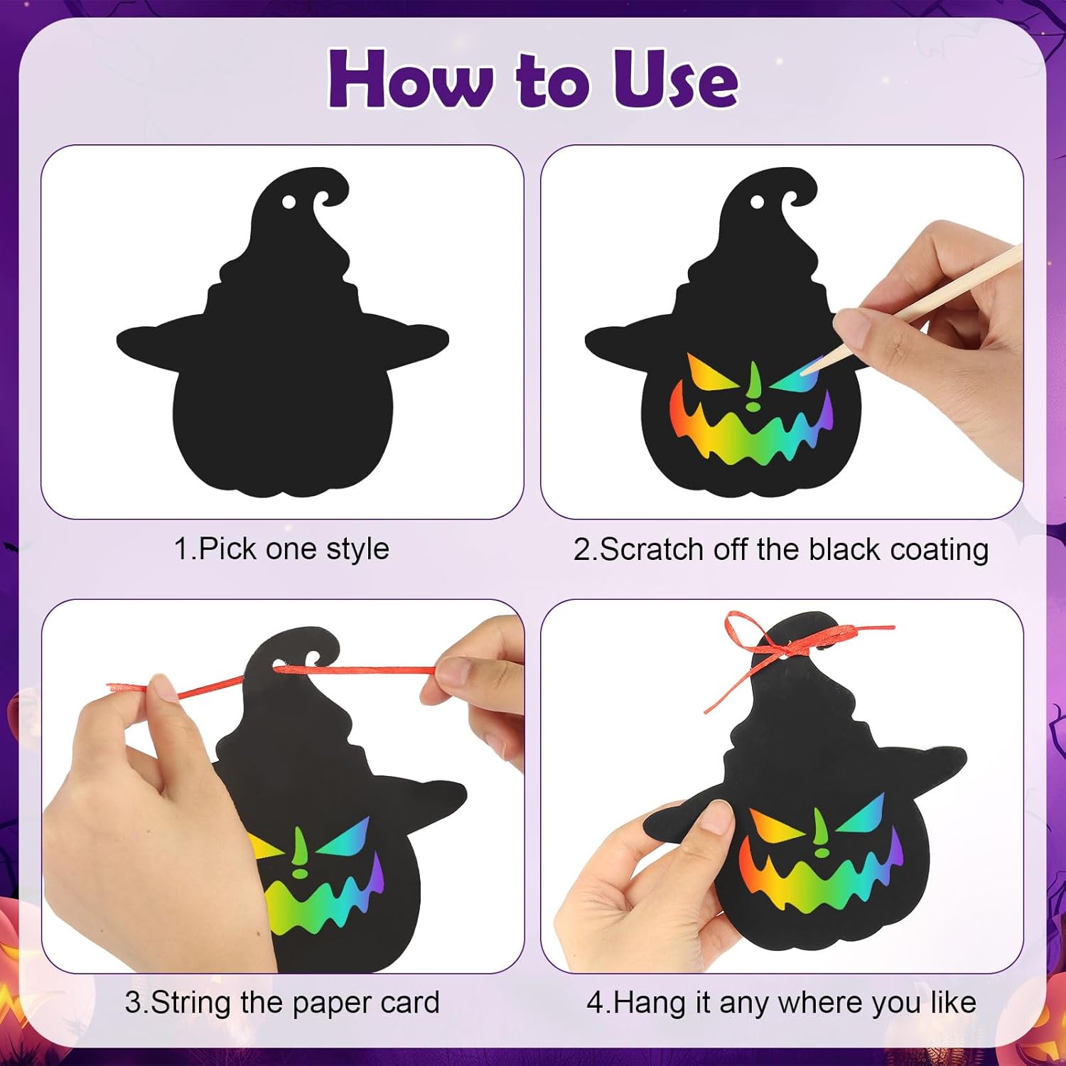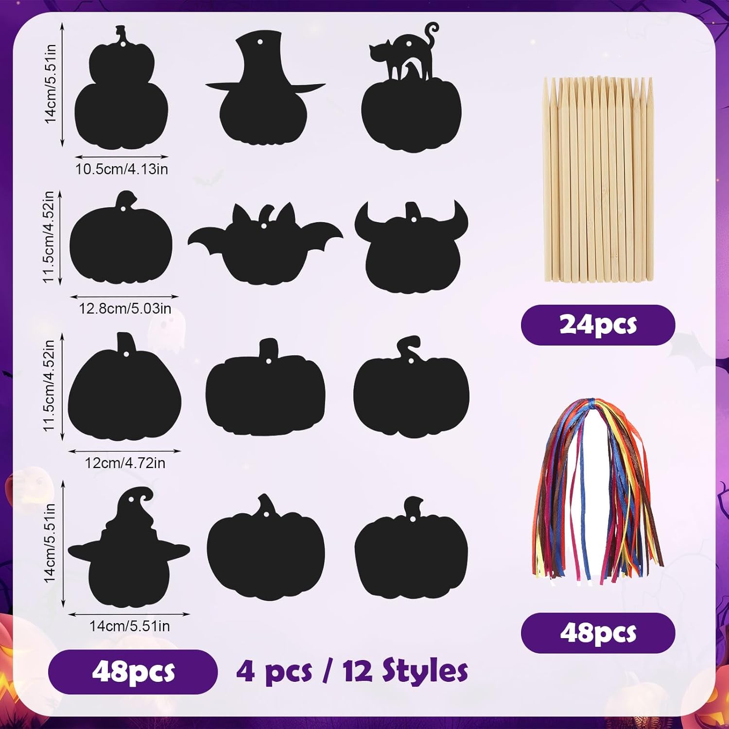 🎃【Scratch Art di Alta Qualità】La scratch art halloween è realizzata in cartone bianco ecologico e di alta qualità, con una consistenza fine e non facile da strappare. La superficie della scratch art bambini è rivestita con un rivestimento nero, atossico e inodore, sicuro e sano. Lo stilo in legno è realizzato in bambù, con una superficie liscia e senza sbavature, non ferisce la mano, non è facile da piegare o deformare e può essere utilizzato in sicurezza dai bambini. 🎃【Facile da Usare】Dietro ogni natalizie scratch art si celano i colori dell'arcobaleno. Basta usare la penna di legno inclusa per grattare via la pellicola nera e scoprire colori vivaci, creando così un motivo a zucca personalizzato. Ogni fogli di carta da grattare arcobaleno ha un piccolo foro e puoi appenderla ovunque tu voglia decorarla dopo aver legato il nastro incluso. 🎃【Immaginazione e Creatività】Fogli da grattare per bambini è un set di attività creative e interessanti, realizzate a mano e pensate per i bambini, che aiuta a coltivare l'immaginazione, la creatività e le capacità estetiche, divertendosi in modo creativo. Carte à gratter halloween può migliorare le capacità motorie, coltivare le capacità pratiche dei bambini e liberare la loro immaginazione. 🎃【Set di Scratch Art per Halloween】Riceverai 48 carta da grattare bambini con 12 motivi diversi, 48 nastri colorati e 24 penne in legno. Lo carta da grattare può aggiungere divertimento e creatività alle feste di Halloween, dando ai bambini l'opportunità di esplorare il proprio talento artistico e creare decorazioni colorate per Halloween. 🎃【Decorazioni di Halloween】I dipinti Carta per Graffi di Halloween possono essere usati come ciondoli o etichette regalo, adatti per Halloween, compleanni per bambini, carnevali e varie feste a tema, e possono essere usati come divertenti oggetti di scena per le feste. I dipinti Halloween Scratch Papper sono adatti anche per attività artigianali, corsi d'arte, progetti scolastici e altri progetti creativi colorati, creando i più sorprendenti colori dell'arcobaleno.