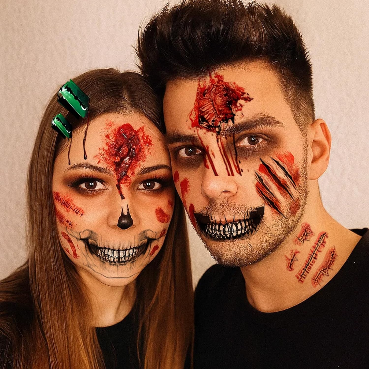 Tatuaggi realistici di Halloween: 26 adesivi per il viso del tatuaggio di Halloween di alta qualità creano un effetto spaventoso e realistico con diverse ferite e cicatrici; ideale per feste di Halloween, cosplay horror e servizi fotografici Impermeabili e durevoli: i tatuaggi di Halloween sono appositamente trattati per essere impermeabili e durare diversi giorni; perfetto per eventi più lunghi o se vuoi fare la doccia più volte Facile da usare: ritaglia il tatuaggio del viso di Halloween desiderato, posizionalo sulla pelle, inumidiscilo con acqua e premi sulla pelle per 20 secondi; Gli adesivi per tatuaggi di Halloween aderiscono saldamente e possono essere facilmente rimossi con olio per bambini. Perfetta aggiunta ai costumi di Halloween: combina i tatuaggi di Halloween con il tuo costume per un effetto ancora più spaventoso. Ampie possibilità di applicazione: i disegni del viso del tatuaggio di Halloween sono perfetti per il trucco di Halloween, feste horror e altri travestimenti spaventosi; crea look indimenticabili con questi adesivi premium per tatuaggi di Halloween