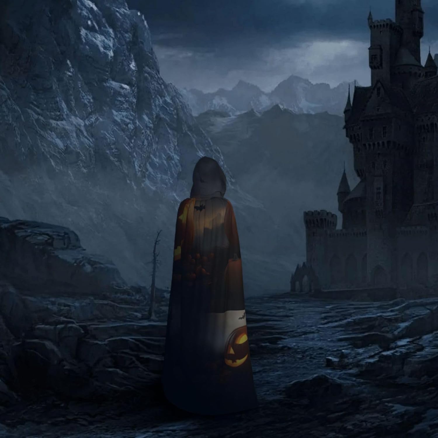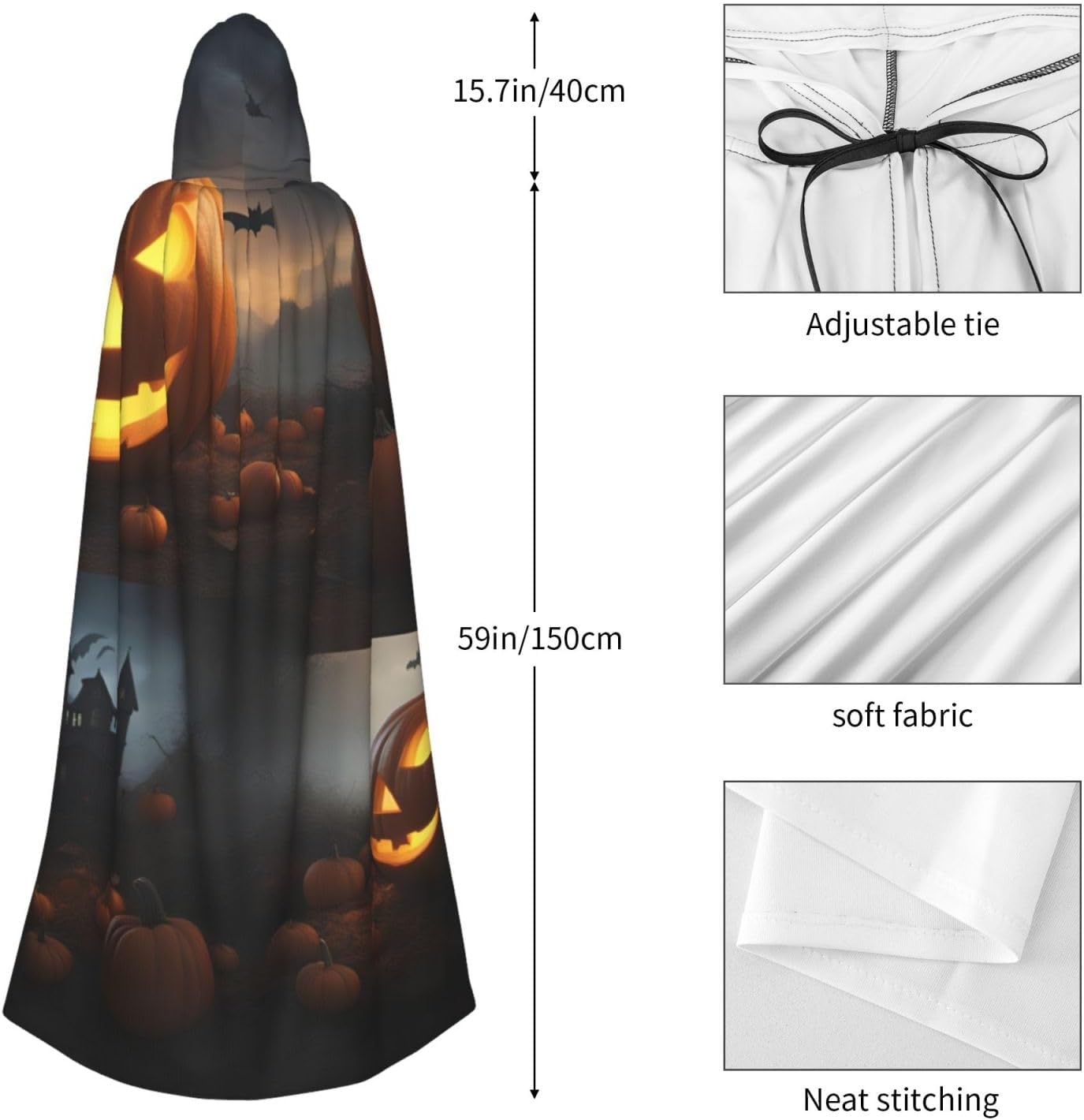Halloween zucca stampa mantello con cappuccio unisex per adulti Halloween lunghezza intera mantello uomo mantello con cappuccio costume