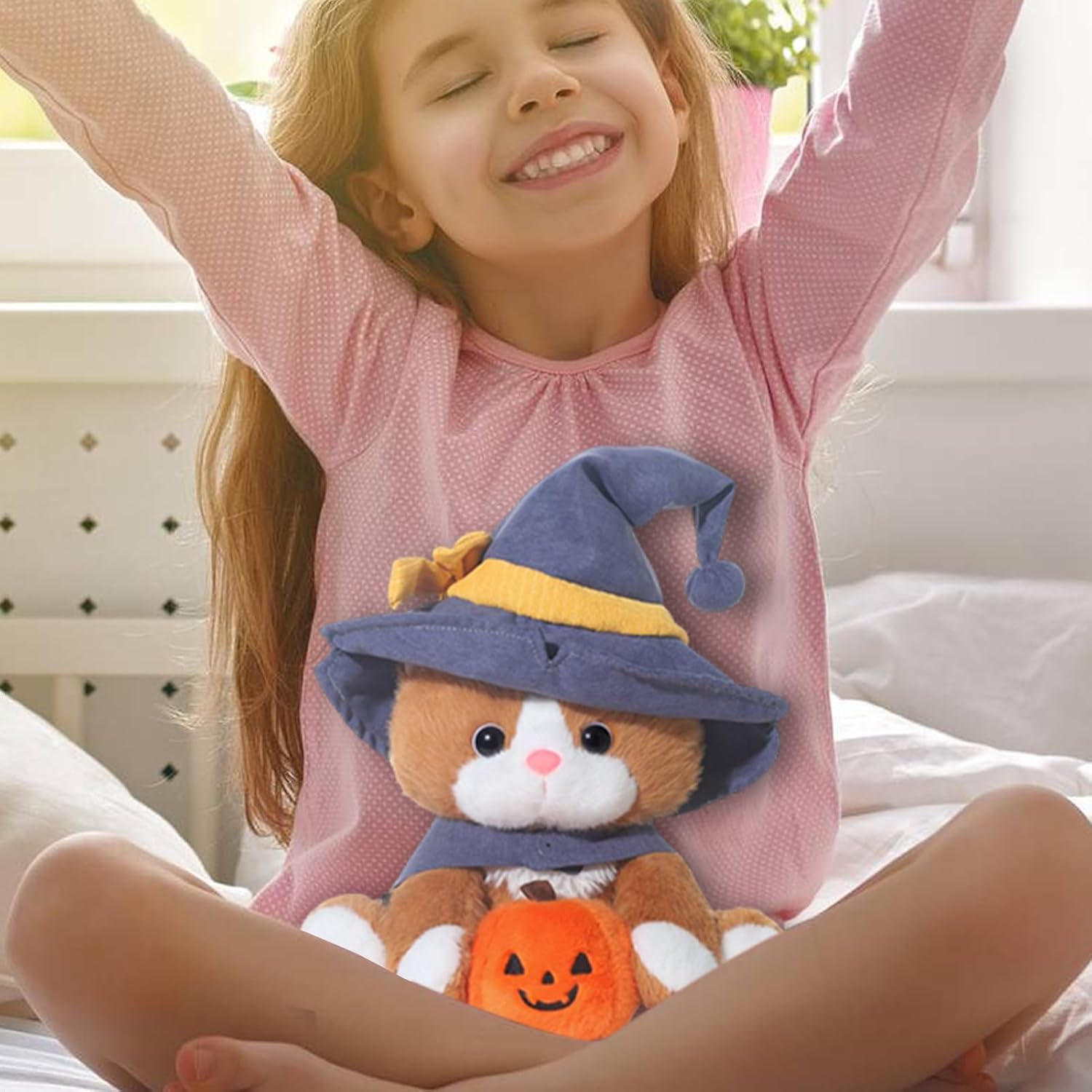 Design del gatto stregone di Halloween: questo pelluche presenta un cappello magico appuntito viola e un mini design del Capo estetico di Halloween con occhi giocosi ed espressivi che migliorano il fascino festivo per bambini e collezionisti stesso modo Materiale di alta qualità: pieno di cotone PP ad alta resistenza, questo animale di pelluche offre una consistenza morbida e liscia, una generosa densità di riempimento, è realizzata in pelluche a short-tule per un'esperienza di abbraccio perfettamente accogliente Buddy di gioco confortante: fungere da compagno gioioso per i bambini, questo pelluche è per il dallo stress e aiuta a ridurre al minimo la solitudine dei sentimenti, garantendo la sicurezza emotiva mentre ricordi durante il gioco interattivo Uso versatile: il compleanno della festa per bambini si adatta a molteplici scopi come lo stile di divano, arredamento per la camera da letto, accenti per il soggiorno, display da tavolo per feste, temi di Halloween, arricchendo la tua casa con la sua elegante adattabilità Presente meraviglioso: porta sorrisi ai bambini con questo animale di pelluche, una scelta eccellente per la presentazione delle vacanze, compleanni, gesti ponderati tra familiari e amici in occasioni memorabili