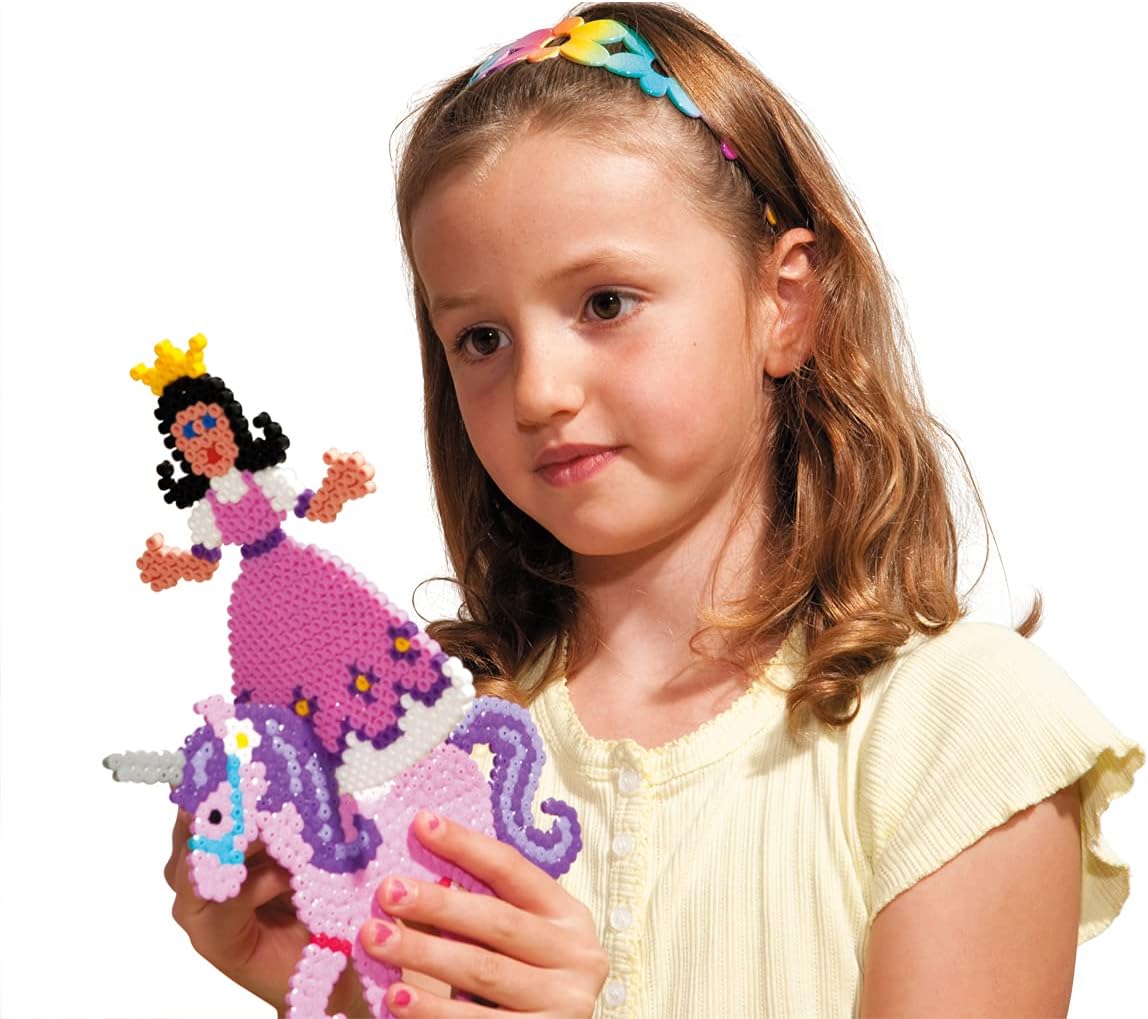 SUPER ASSORTIMENT : Ce lot de perles à repasser rassemble 6000 perles HAMA Midi de de 16 couleurs différentes dont 6 couleurs transparentes et pailletées ! Scopri anche 3 piastre riutilizzabili a tema magia: 1 principessa, 1 unicorno e 1 sirena. I vostri bambini potranno lasciare libero sfogo alla loro immaginazione. (Adatto per bambini dai 5 anni). LOISIR CREATIF INCONTOURNABLE : Hama propose une activité manuelle ludique et créative. I bambini assemblano perline colorate per formare immagini su una piastra di supporto. Una volta completata la loro creazione un adulto si munita di un ferro da stiro e di carta da forno per riscaldare le perline da stirare. Questo passaggio da stiro incolla le perline per creare una forma in rilievo. Decorazioni originali e uniche GIOCHI CREATIVI EVOLUTIVI: a seconda dell'età dei vostri bambini, potrete scegliere diverse dimensioni di perline da stirare per il loro laboratorio creativo: le perline Maxi (facili da maneggiare) per i bambini a partire dai 3 anni; le perle Midi per i bambini di età superiore ai 5 anni e le perline Mini per i 10 anni e più. Un gioco creativo evolutivo che occupa i bambini di qualsiasi età GIOCO LUDICO: i giochi Hama sono pensati per lo sviluppo intellettuale e motore dei bambini. Nei primi anni di vita, i bambini imparano a riconoscere i colori, a afferrare gli oggetti, a distinguere le forme, ad avere una prima idea delle quantità, ecc. man mano che questo strumento di apprendimento diventa un vero hobby creativo. I bambini completano la loro creazione realizzando motivi 3D o accessori decorativi (gioielli, portachiavi, maschera, cornice, portamatita, ecc.). Tutto è possibile!