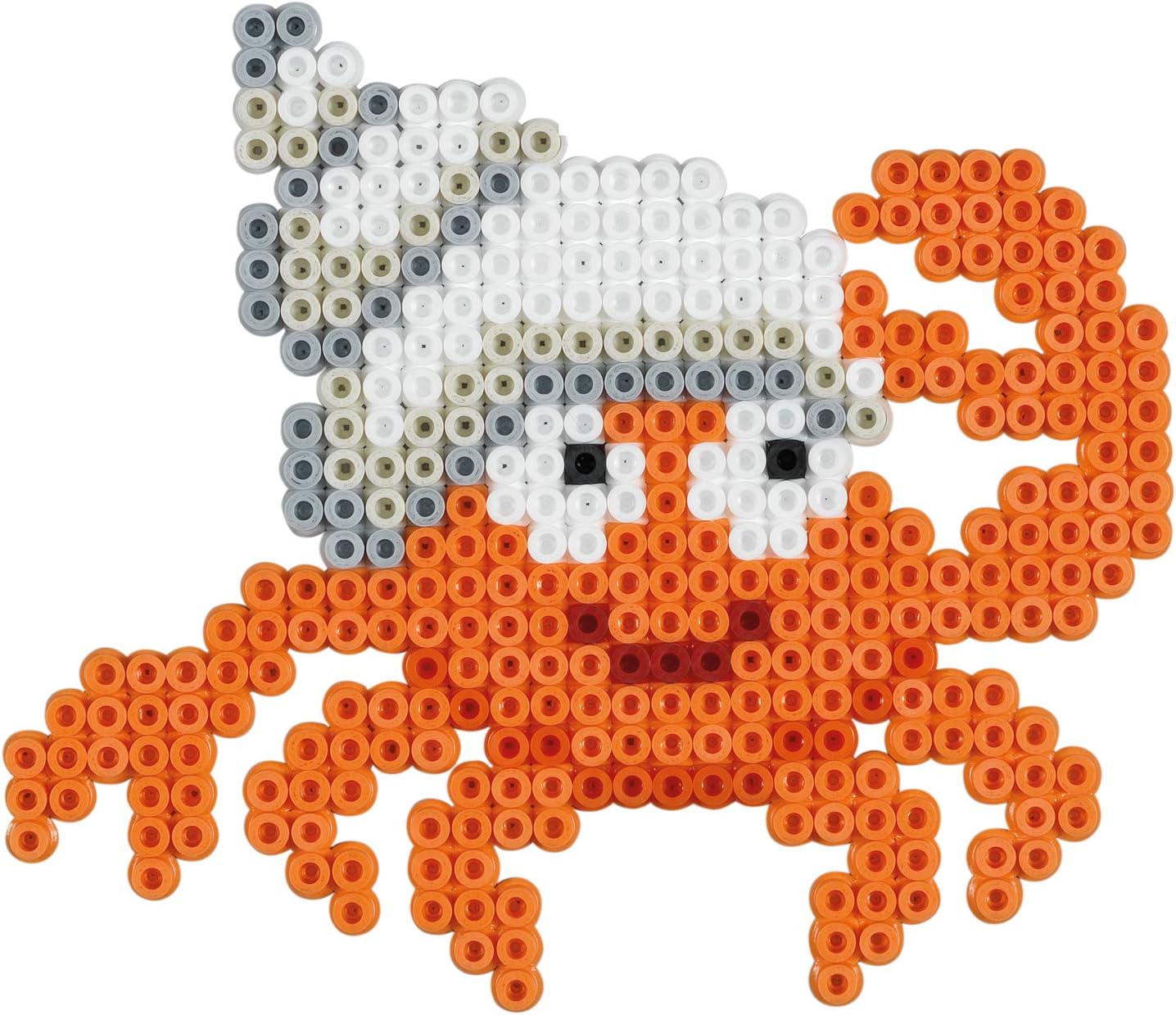 Un cofanetto colorato per riprodurre gli animali divertenti dei fondali marini in perle da stiro Hama. In questo cofanetto: 1 grande piastra quadrata, modelli divertenti, 2500 perline Hama midi di di una moltitudine di colori, istruzioni e carta da stirare. Per giocare, niente di più semplice: posizionare le perline sulla piastra. Coprire il motivo con la carta da stiro e stirare con ferro molto caldo senza vapore. La stiratura è lasciata alla cura degli adulti. Rimuovere il motivo ottenuto dalla piastra di base che è riutilizzabile. La gamma di perle da stiro Midi Hama è adatta per i bambini di età superiore ai 5 anni. I giochi Hama sono pensati per lo sviluppo intellettuale e motore dei bambini.