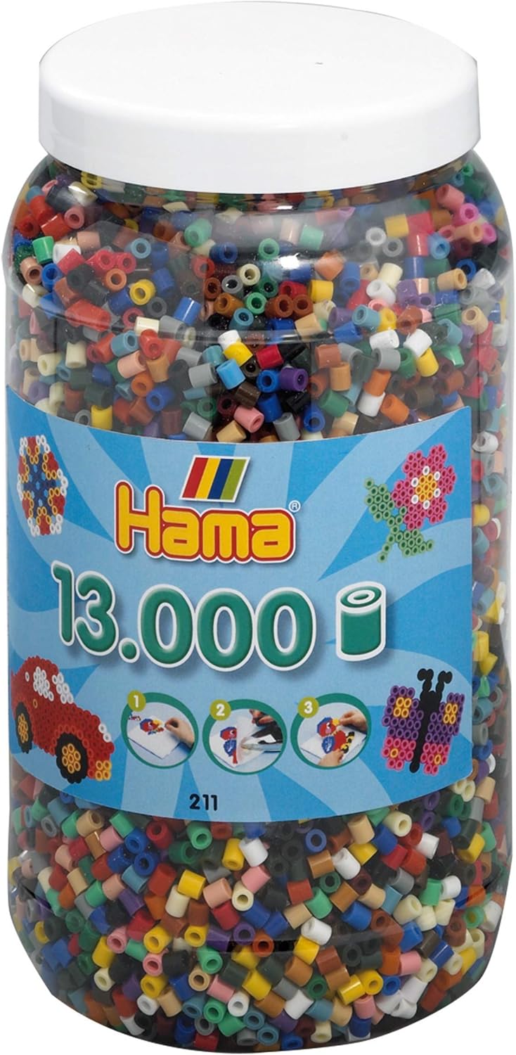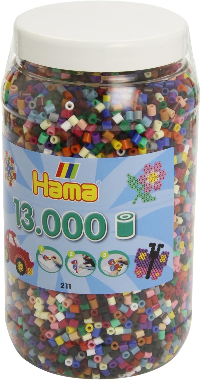 Barattolo con circa 13.000 perline colorate da stirare in 22 diversi colori di base Contiene perline midi da 5 mm di diametro, consigliate per il fai da te con bambini dai 5 anni in su, la stiratura deve essere eseguita da un adulto Le perline artigianali sono versatili e sono adatte per realizzare immagini pixel, piccole figure o per incollare, cucire e infilare Il mestiere con perline favorisce la concentrazione, le capacità motorie e la creatività in modo giocoso Le perline e gli accessori originali Hama sono realizzati in plastica innocua (senza plastificanti come BPA e ftalati)