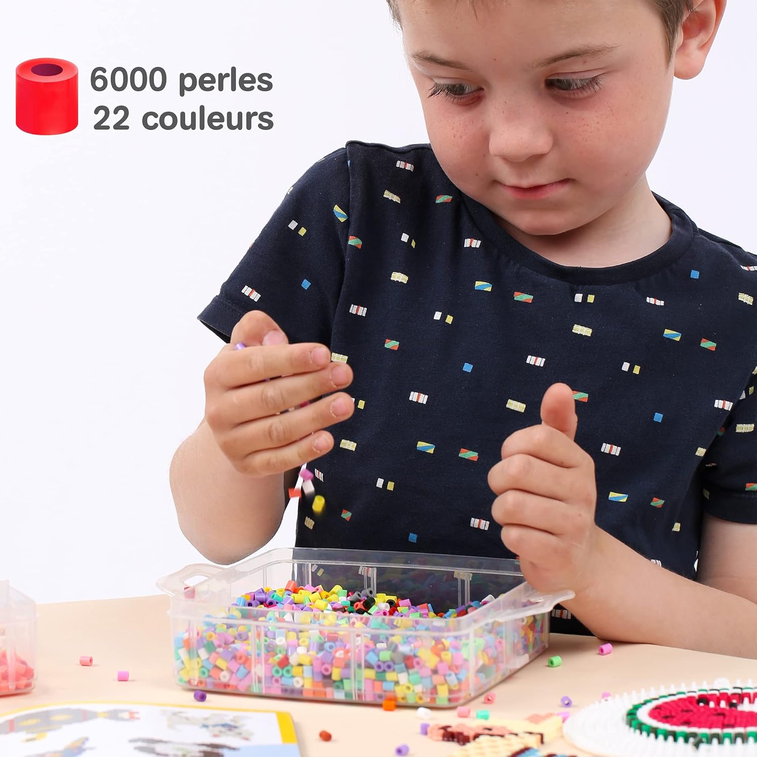 Tipo di perle: Midi Ritrovate in questo assortimento, 1 grande piastra rotonda, 1 grande piastra esagonale, oltre a una bustina da 6000 perline miste di 22 colori e carta da stirare. Età minima: 5 anni Il nostro obiettivo principale è la soddisfazione del cliente