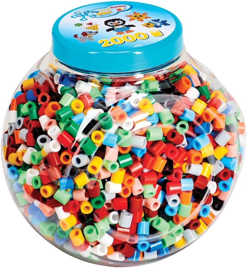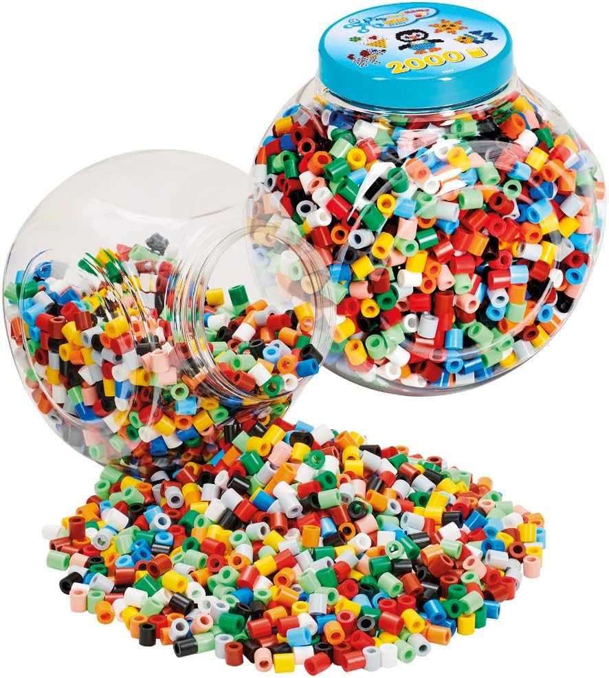 Contiene un contenitore con 2.000 maxi perline (perline più grandi per le mani dei più piccoli) Crea fantastici disegni e creazioni Tavole forate riutilizzabili