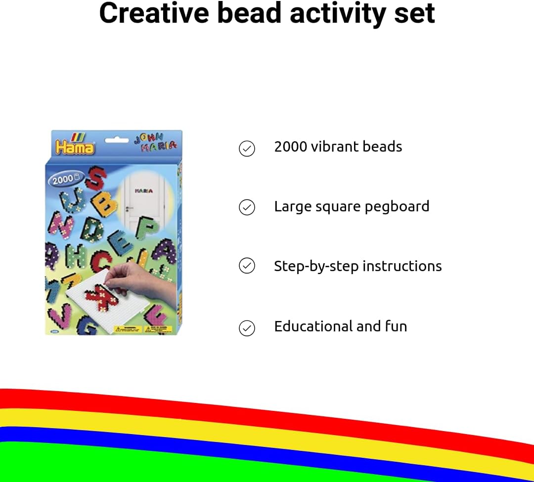 Set con circa 2.000 perline colorate Midi Hama in diversi colori, modello con motivo, una piastra quadrata e carta da stiro Contiene perline di misura media da 5 mm di diametro, consigliate per il fai da te con bambini dai 5 anni in su, la stiratura dovrebbe essere un adulto Le perline per bricolage sono versatili e sono adatte per la creazione di immagini pixel, piccole figure o per incastro, cucire e infilare Il fai da te con perline favorisce la concentrazione, le abilità motorie e la creatività in modo giocoso Le perline e gli accessori originali Hama sono realizzati in plastica sicura (senza plastinti come BPA e ftalati)
