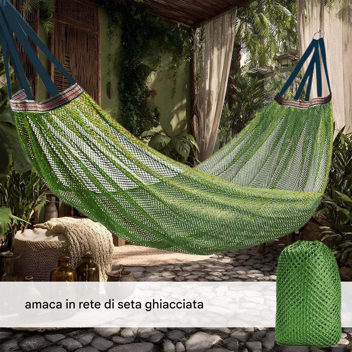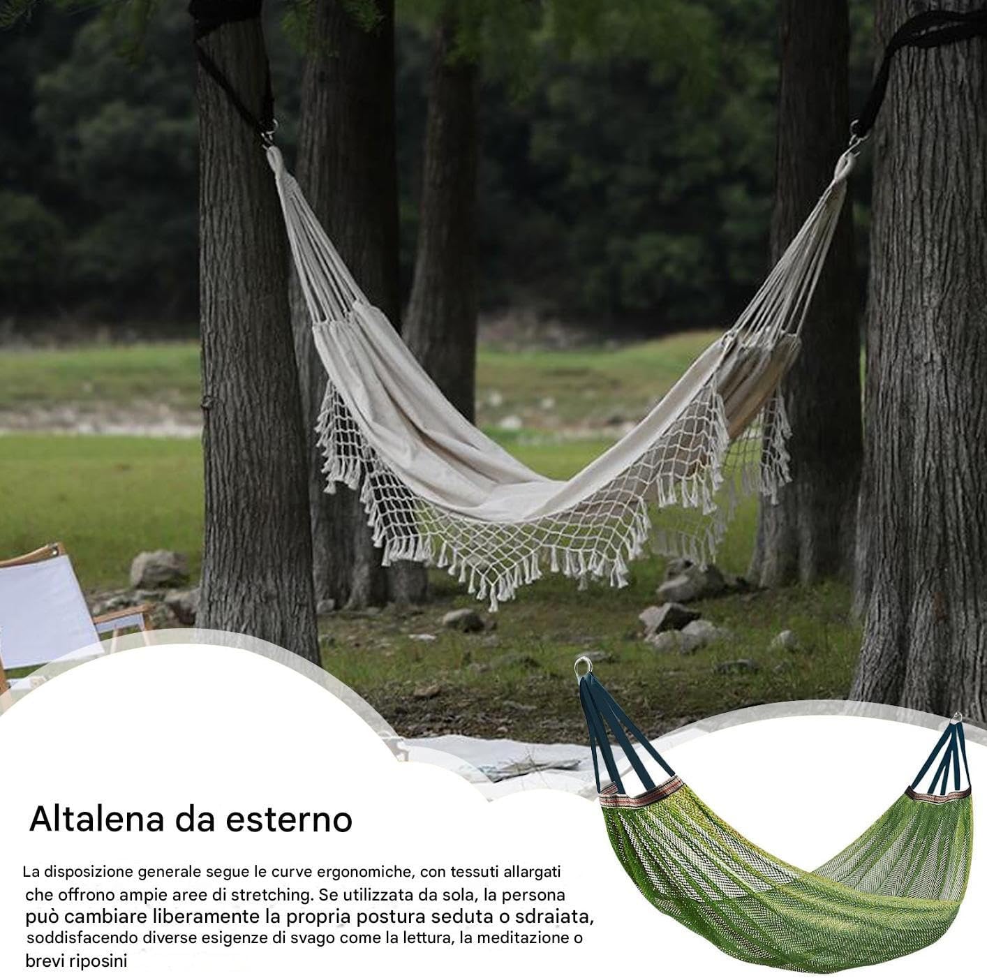 Soluzione pieghevole e compatta: realizzata per esploratori moderni, l'amaca da campeggio altalena presenta una costruzione leggera che migliora la mobilità e la facilità d'uso, rendendolo un compagno ideale per estese estensioni o escursioni esterne spontanee senza compromettere la durata Comfort asciutto traspirante: sperimentare la struttura del tessuto a maglie fredda con materiale misto di seta ghiacciata altalena, garantendo il flusso d'aria traspirante e la riduzione del calore per il comfort secco durante le avventure in campeggio Durabilità e stabilità migliorate: l'amaca da campeggio presenta abilità di tessitura 3D, attrezzatura per zaino in spalla combinato con una robusta struttura portante, per migliorare la e prevenire l'usura nel di sospensione senza sforzo: sperimentare una rapida installazione delle sospensioni con questa amaca da campeggio, amaca da viaggio creata per versatilità interna-outdoor e adattabile a varie impostazioni, garantendo prestazioni affidabili con compatibilità sugli alberi e il pilastro per innumerevoli momenti di rilassamento Spazio per il libero migliorato: con un ampio layout in tessuto, l'amaca consente l'adattamento della curva del corpo ergonomica e l'amaca della spiaggia spaziosa spazio a riposo, perfetta per il rilassamento per il libero e la flessibilità adattabile a posa