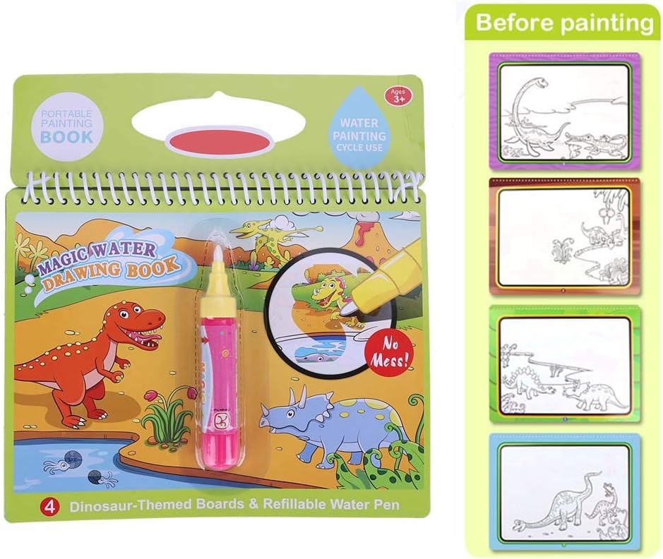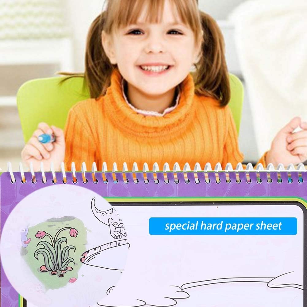 [Pulito e colorato] Disegna con acqua, non sono necessari colori o pennarelli disordinati. [DIVERTIMENTO INFINITO] I colori scompaiono quando l'acqua si asciuga, permettendoti di ripetere il piacere di dipingere. [GIOCATTOLO EDUCATIVO] Promuove l'apprendimento e lo sviluppo artistico dei bambini, rendendolo strumento prezioso [VIAGGIO CREATIVO] Risveglia la passione per la pittura fin dalla giovane età attraverso un semplice processo di pittura. [ARTE DA VIAGGIO] Design portatile con rilegatura a spirale per trasportare e girare facilmente le pagine