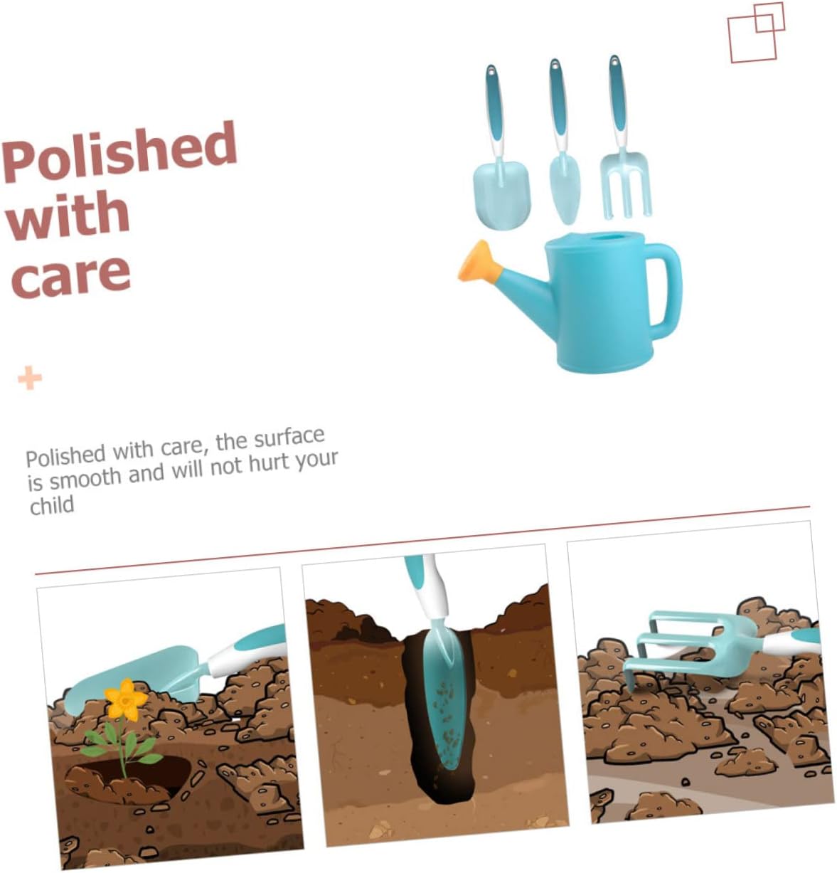 Attrezzi da giardino per: per esterni o per lavorare insieme in giardino, attrezzi da giardinaggio per principianti Attrezzi da giardinaggio per: manico liscio, appositamente progettati per le mani piccole dei bambini, attrezzi da giardinaggio per Attrezzi da giardinaggio per: attrezzi per piantare terriccio, scavare, allentare il terreno, trapiantare, diserbare, attrezzi da giardinaggio per: accuratamente lucidati, la superficie è liscia e non farà male al bambino, attrezzi per piantare all'aperto Attrezzi da giardinaggio per: appositamente progettati per, leggeri e maneggevoli, adatti per piantare fiori e ortaggi, set per piantare