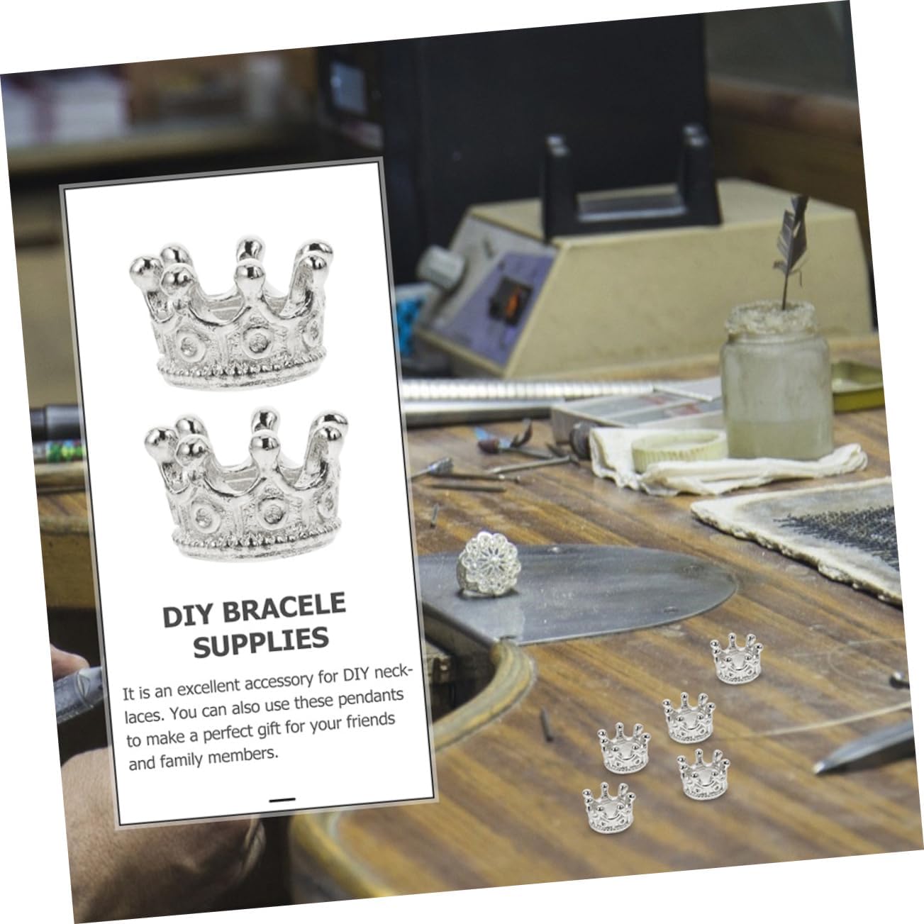 Ciondolo per gioielli fai-da-te: ottimi accessori per la creazione di gioielli per festival e feste, ciondolo in lega a corona Mini ciondolo decorativo: realizzato in lega sicura e di alta qualità e mini collana con ciondolo Gioielli a forma di corona: dopo un'attenta lucidatura, la superficie del ciondolo è liscia, quindi non ti farà male alle mani. Ciondoli per la creazione di gioielli Ciondolo in lega: può essere utilizzato per creare gioielli, collane, orecchini, decorazioni per ciondoli per bracciali, lavori fai-da-te e creazione di gioielli. Piccoli ciondoli per creare gioielli: amici o familiari che vogliono realizzare gioielli con questi delicati ciondoli, piccoli ciondoli per creare gioielli