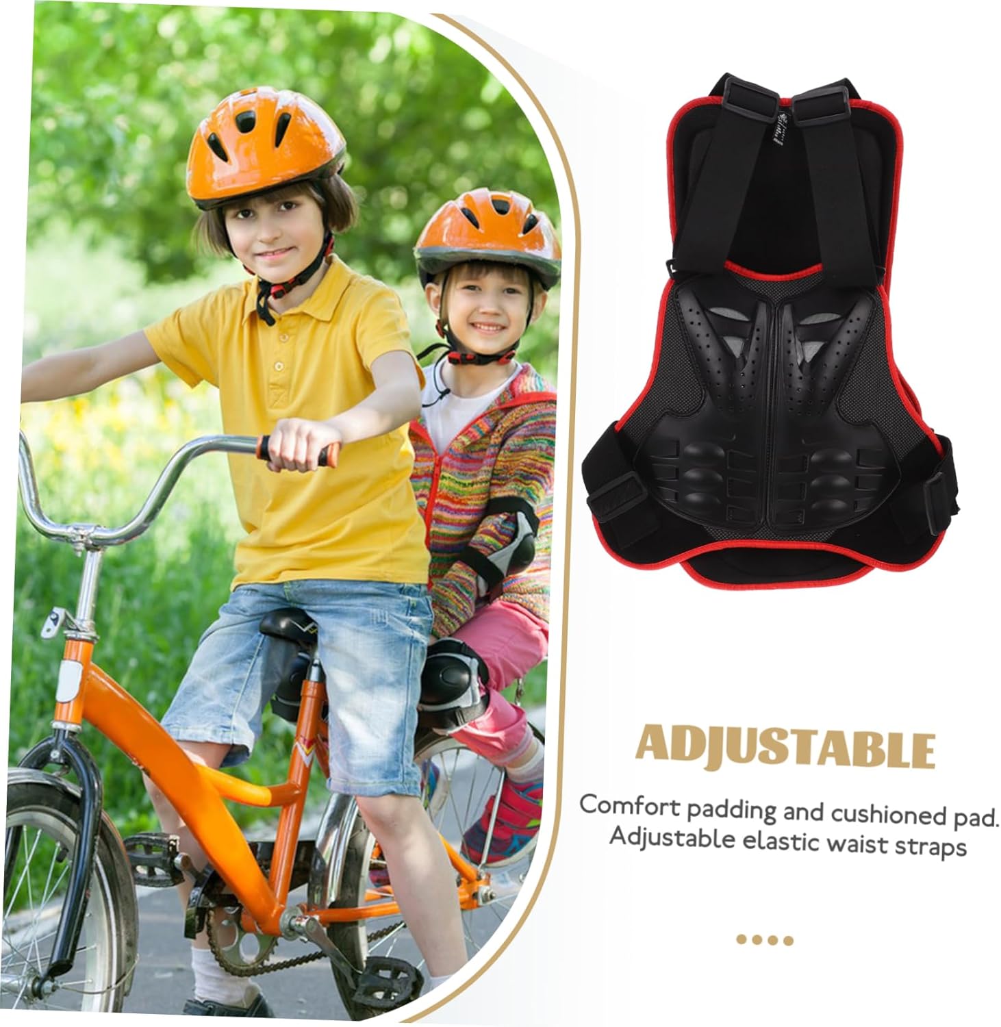 Canotte per bambini: imbottitura comfort e imbottitura imbottita. cinghie elastiche regolabili in vita. : adatto al ciclismo; attività motoria e altre attività. Equipaggiamento riflettente: gilet per proteggere la colonna vertebrale: imbottitura comfort e imbottitura imbottita. cinghie elastiche regolabili in vita. Moto per bambini: protezione per il torace della bicicletta: una cosa per tutti coloro che amano lo sport. Canotta da ragazzo: equipaggiamento motociclistico: adatto per il ciclismo; attività motorie e altre.