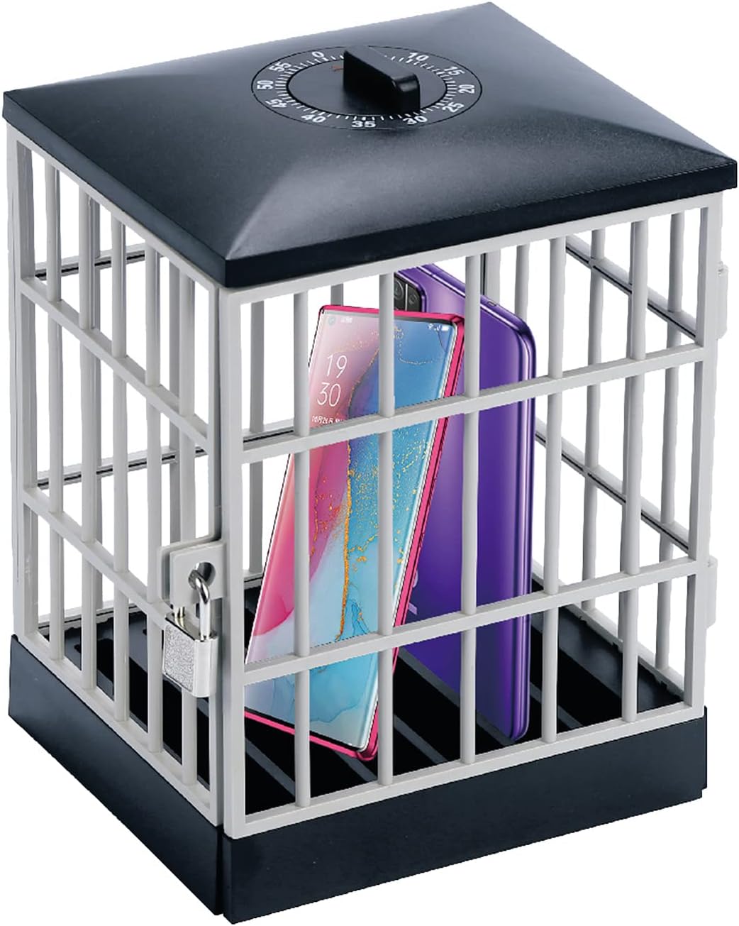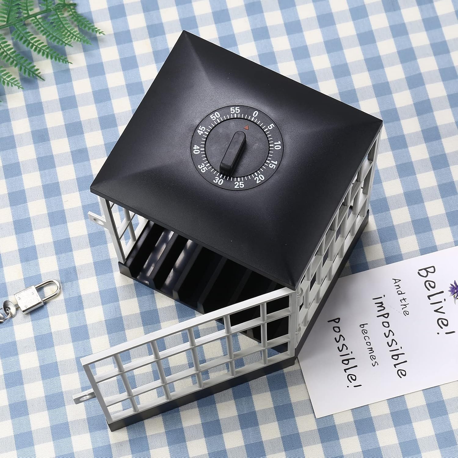 Adatto come regalo: il blocco per cellulare Sturdy Cell ti aiuta a spegnere il telefono cellulare, in modo che i tuoi bambini o il tuo partner possano anche mettere il proprio telefono in autoisolamento, una novità e il regalo perfetto per il drogato telefonico della tua vita. 【Controlla il tempo del telefono dei bambini】 Il telefono cellulare controlla il tempo che i bambini trascorrono con i telefoni cellulari e blocca i telefoni fino a quando i compiti o le faccende domestiche non sono completati. Una scatola mobile potrebbe essere un nuovo modo per controllare il tempo che i bambini trascorrono con i dispositivi elettronici. Ampio spazio di archiviazione: offre spazio per un totale di 5 telefoni cellulari. La Cell Phone Jail Lock Box è la nuova custodia per cellulare con dimensioni di circa 15 x 13 x 23 cm (5,91 x 5,12 x 9,06 pollici) e offre spazio sufficiente per 5 telefoni cellulari, se tutta la famiglia ha bisogno di una disintossicazione del dispositivo. Sicura da usare: la gabbia per telefono con serratura dispone di un design sicuro e a prova di manomissione. Grazie al meccanismo di blocco di sicurezza, nessuno può entrare nello stato bloccato ed estrarlo. È stato appositamente progettato per garantire che il telefono non può essere rimosso bloccato. Design artistico del timer: ruotare il pulsante del cronografo in senso orario prima di ogni utilizzo, iniziando da 0 e continuando fino a quando la lancetta del cronografo è allineata con i simboli zero, quindi ruotare il pulsante del timer in senso antiorario sul numero che si desidera far suonare, blocco del cellulare. La scatola è più adatta per l'uso in cucina, per casa e ufficio e è adatto a tutti.