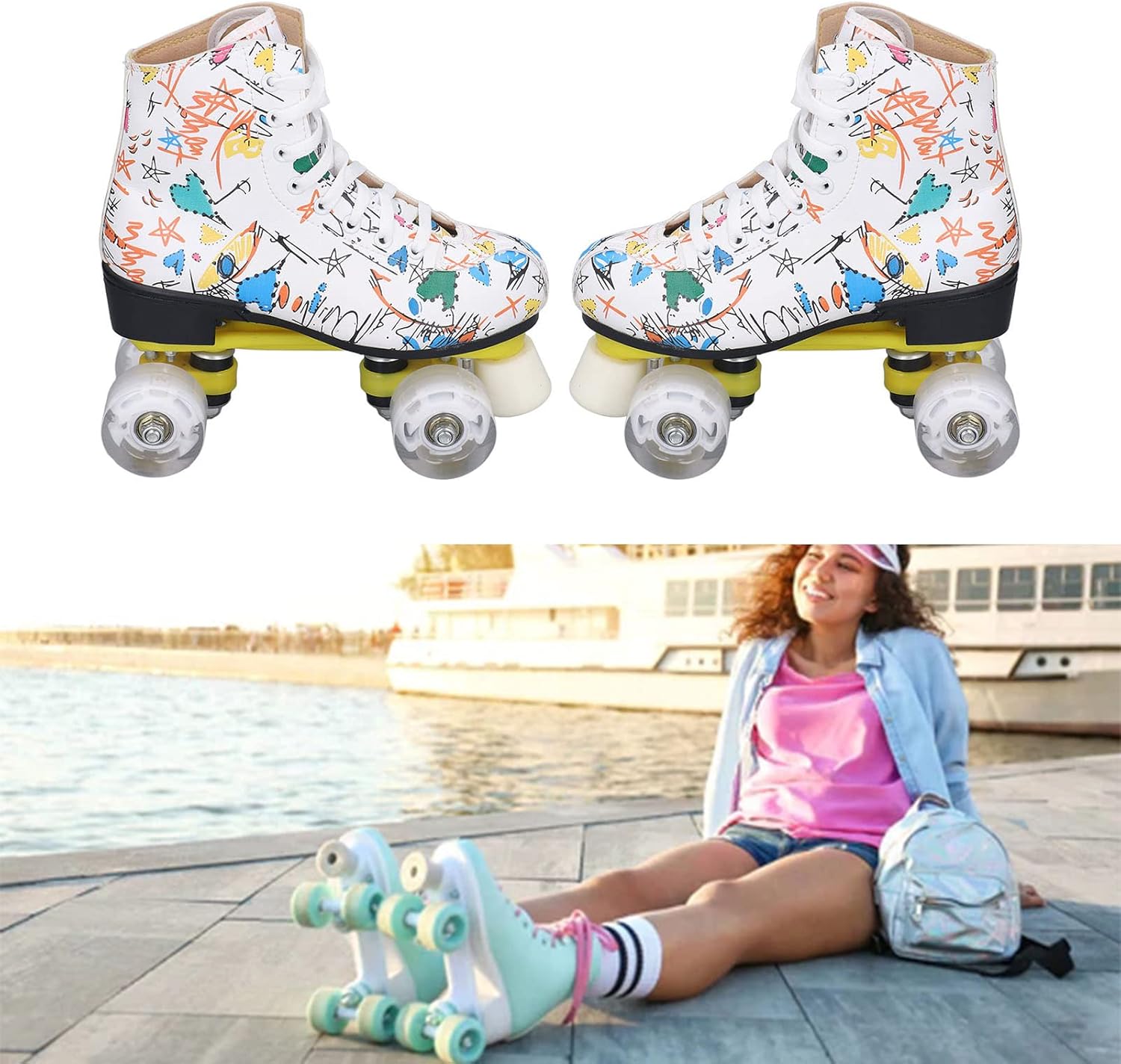 Colonna di supporto anteriore: c'è una colonna di supporto davanti, molto adatta ai principianti. Può mantenere meglio il controllo e la frenata rapida. Questa struttura garantisce che la staffa non venga danneggiata. Traspirabilità interna: la traspirabilità interna dei pattini a rotelle a doppia può aiutare i tuoi piedi a dissipare rapidamente il calore, evitare l'odore del piede e prevenire il sudore, permettendoti di goderti appieno lo scivolamento. Ampie applicazioni: i pattini a rotelle dai colori vivaci sono il per bambini, ragazzi, ragazze e fidanzati, fidanzate o famiglia. È anche una scelta ideale per il pattinaggio indoor e outdoor. Comfort e sicurezza: questi pattini a rotelle utilizzano scarpe alte controllabili per garantire una sicurezza ottimale, mentre i lacci delle scarpe premium offrono la massima protezione per garantire comfort e sicurezza del piede. Materiale robusto e durevole: i pattini a rotelle sono dotati di robusti pattini a quattro ruote realizzati con materiali stampati durevoli, che possono fornire prestazioni di pattinaggio sicure e affidabili. Le ruote lucide ti rendono più fresco quando pattini.