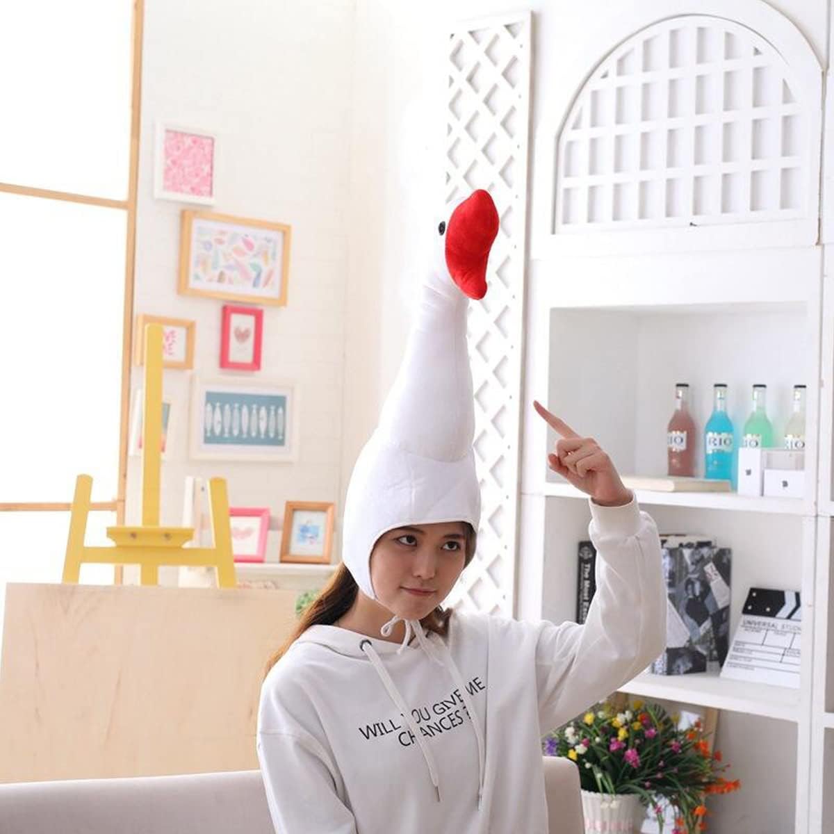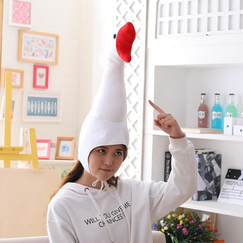 haozaikeji Cappello d'oca in peluche con collo lungo Novità Cappello da festa Adulto Creativo Animale Fancy Dress Cappelli per Cosplay Photoshoot Stage Performance Natale Festa di Halloween Realizzato in tessuto peluche di alta qualità, riempito con morbido cotone PP, comodo da indossare, rendendo la testa super calda. La dimensione del cappuccio per cacca è di 38 x 30 cm e la dimensione del cappuccio d'oca è di 55 x 25 cm (altezza x lunghezza), regolabile, taglia unica.
