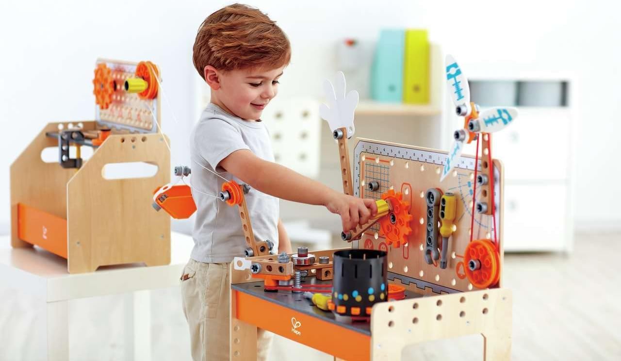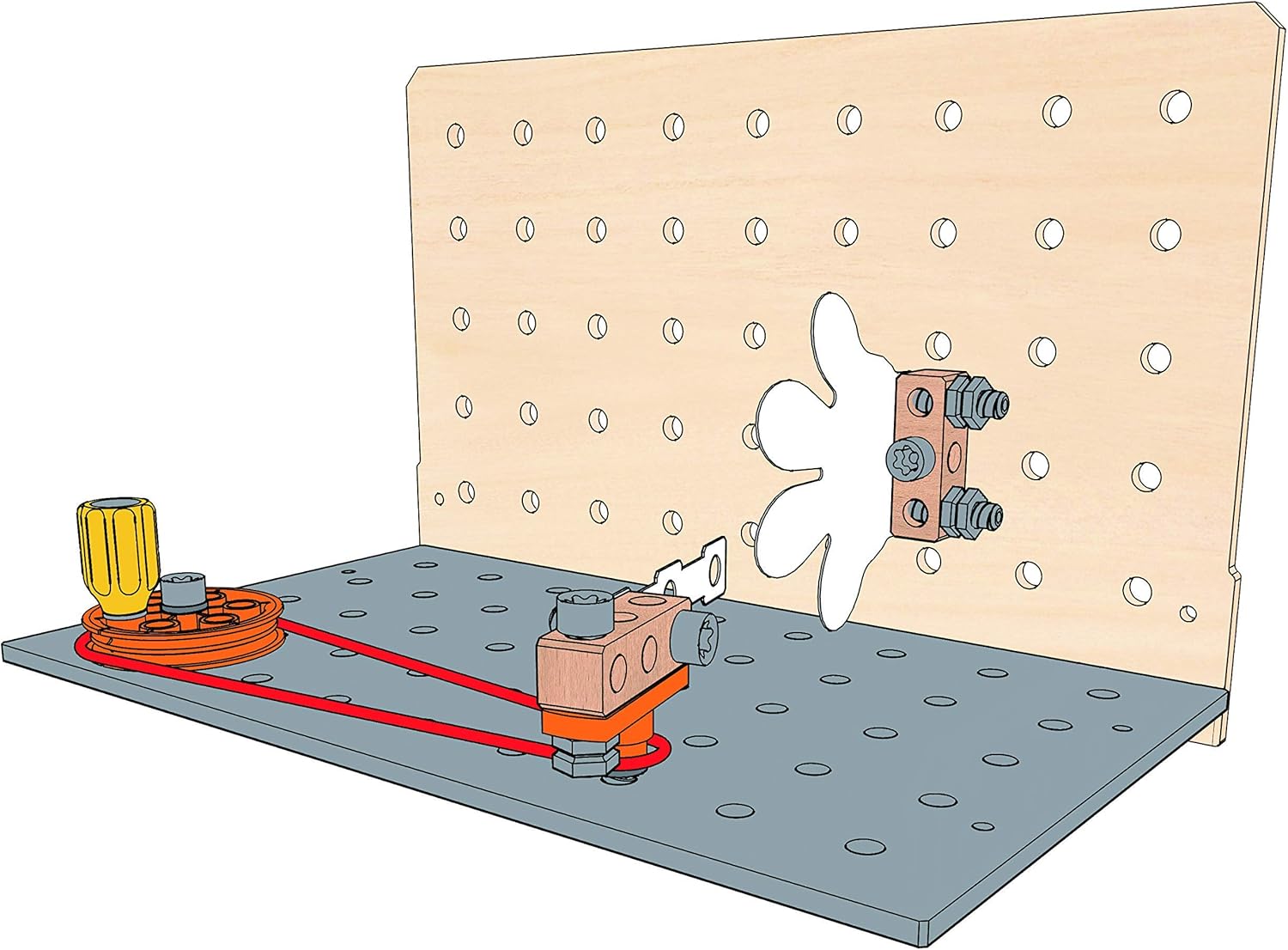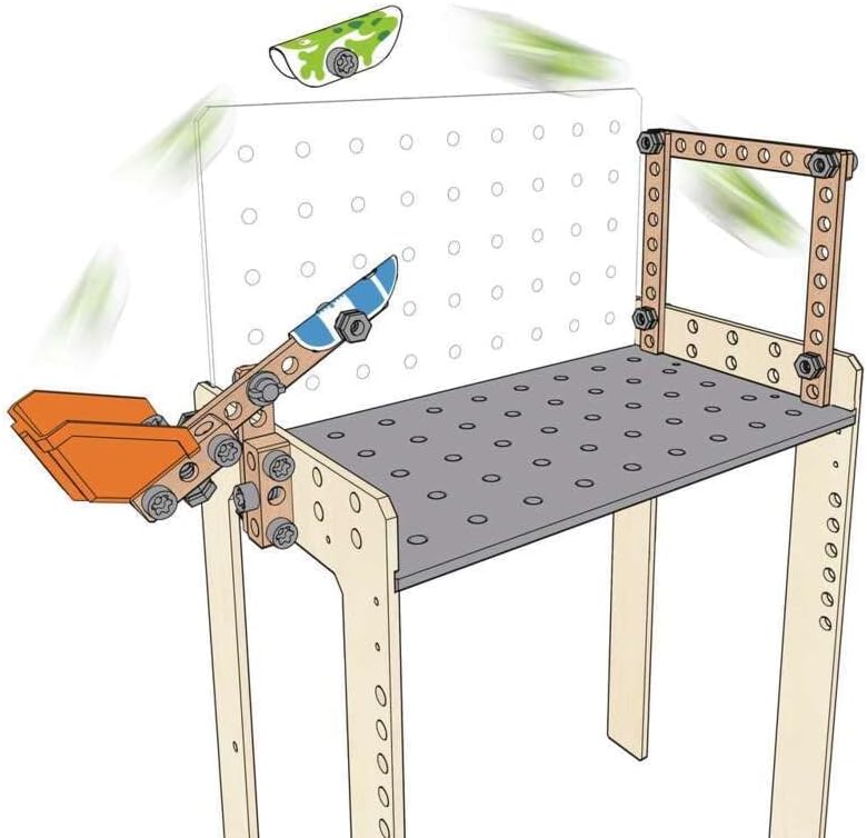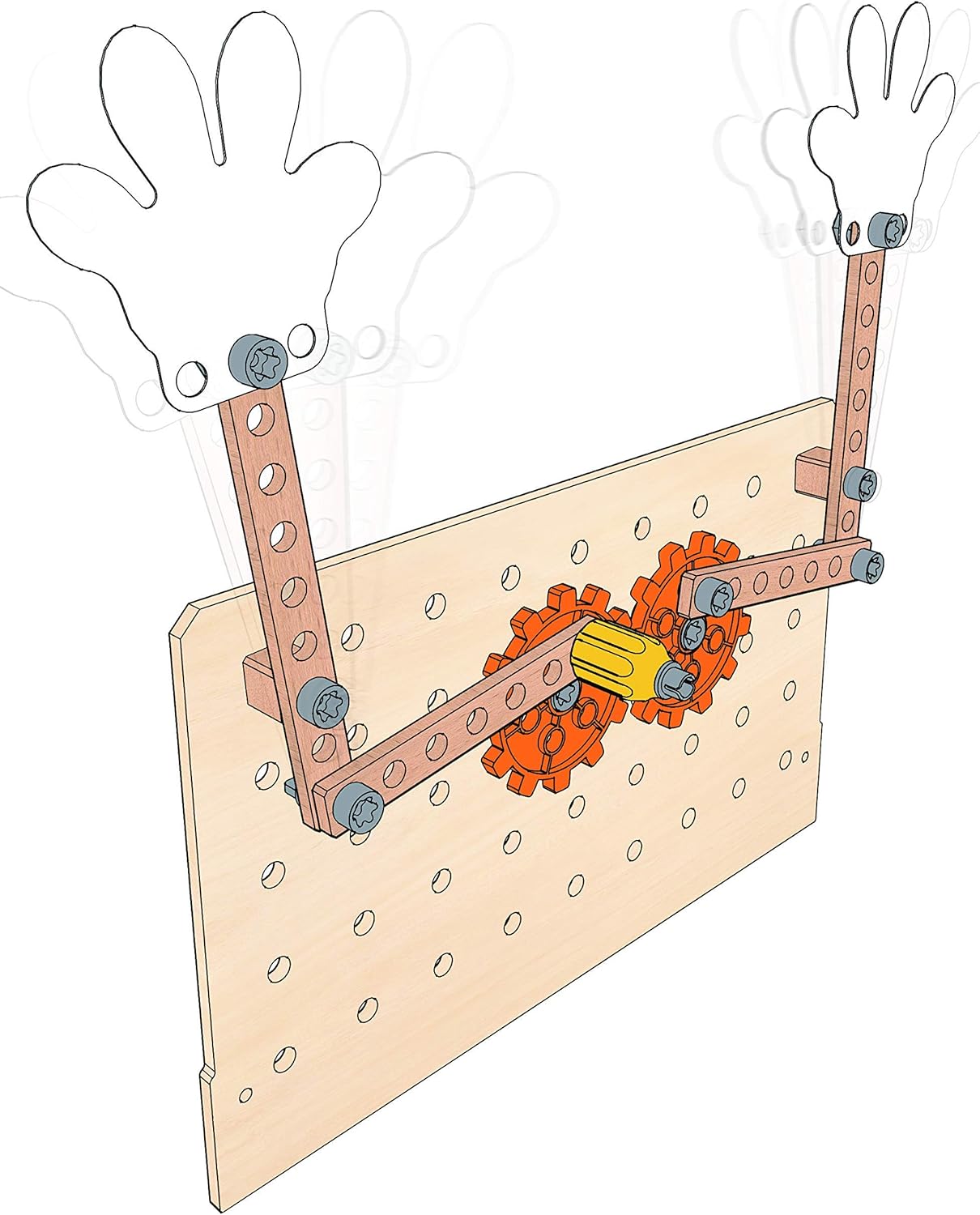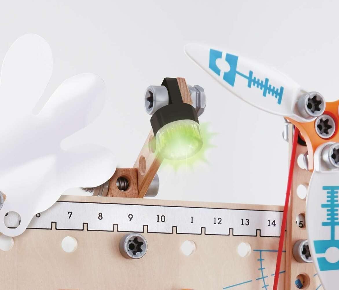 79 PEZZI PER 15 ESPERIMENTI E TANTE INVENZIONI: un meraviglioso banchetto da lavoro per insegnare a pensare in modo tecnico-scientifico a bambini e bambine dai 4 anni in su. Tutto il necessario per condurre esperimenti entusiasmanti e costruire congegni come uno scavatore, uno zootropio e un’elica. UN REGALO DA SOGNO PER PICCOLI INVENTORI DAI 4 ANNI IN SU: fai felice i tuoi piccoli inventori con questo banchetto ricco di attrezzi e componenti realizzati pensando alle loro manine. Forme grosse e angoli arrotondati per la loro sicurezza e tanti modi d’uso per diversi livelli di abilità. STIMOLA LA CURIOSITÀ E IL PENSIERO SCIENTIFICO: come fa la rana a spostarsi? Perché nello zootropio le immagini si muovono? Gli esperimenti creativi stimolano la curiosità nei bambini e Junior Inventor offre la possibilità di imparare facendo, il modo migliore per capire come funzionano le cose. EDUCAZIONE STEAM: tutti i set Junior Inventor supportano lo sviluppo del pensiero logico e la comprensione dei principi base di Scienza, Tecnologia, Ingegneria, Arte e Matematica (STEAM). Attraverso il gioco, i bambini sperimentano principi essenziali della fisica in modo semplice e divertente. SCARICA L’APP JUNIOR INVENTOR PER IOS E ANDROID: per aiutare i piccoli scienziati a muovere i primi passi nel mondo scientifico, Hape ha sviluppato l’app gratuita Junior Inventor. Qui trovi istruzioni facili da seguire e suggerimenti per i tuoi esperimenti. MATERIALI SICURI, SOSTENIBILI E RESISTENTI: da sempre Hape è attenta alla qualità e sicurezza dei materiali utilizzati, privilegiando quelli più gentili con l’ambiente. Per questo quasi tutti i pezzi del kit Junior Inventor sono in legno, mentre parti come bulloni, dadi e manopole sono in plastica per assicurare un uso più agevole.