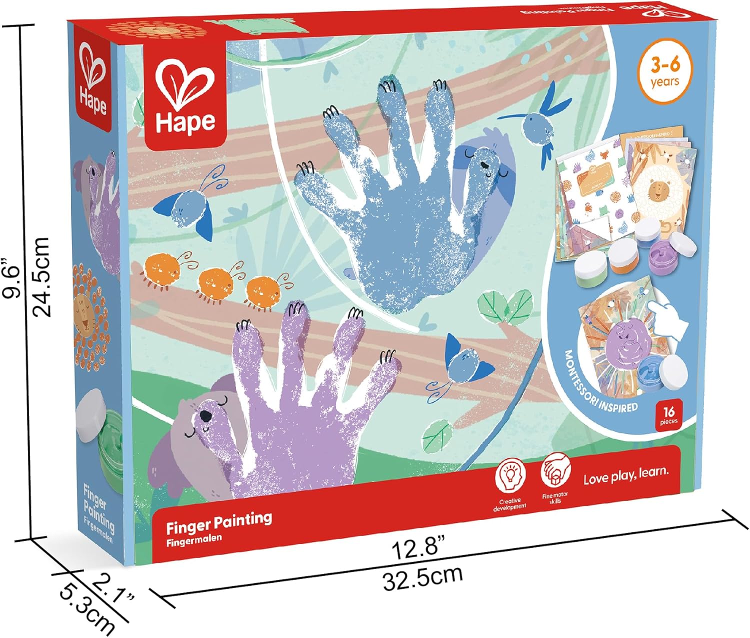 SET ARTISTICO COMPLETO: Questo album di undici pagine include nove attività di ispirazione montessoriana, una pagina di ispirazione e quattro vasetti di pittura. ISPIRA LA CREATIVITÀ: La pittura con le dita è perfetta per incoraggiare ogni tipo di creatività, dai dipinti fantasiosi all'apprendimento di forme, modelli e colori per avvicinare i bambini al mondo dell'arte. ESPRIMERE EMOZIONI: La pittura è un ottimo modo per far conoscere ai bambini modi positivi di esprimere le proprie emozioni. FAVORISCE LO SVILUPPO: Dipingere con le dita aiuta a sviluppare le abilità motorie, il riconoscimento dei colori e la curiosità. FACILE DA RIPORRE: Questo set include un supporto per la carta e una confezione per una facile conservazione.