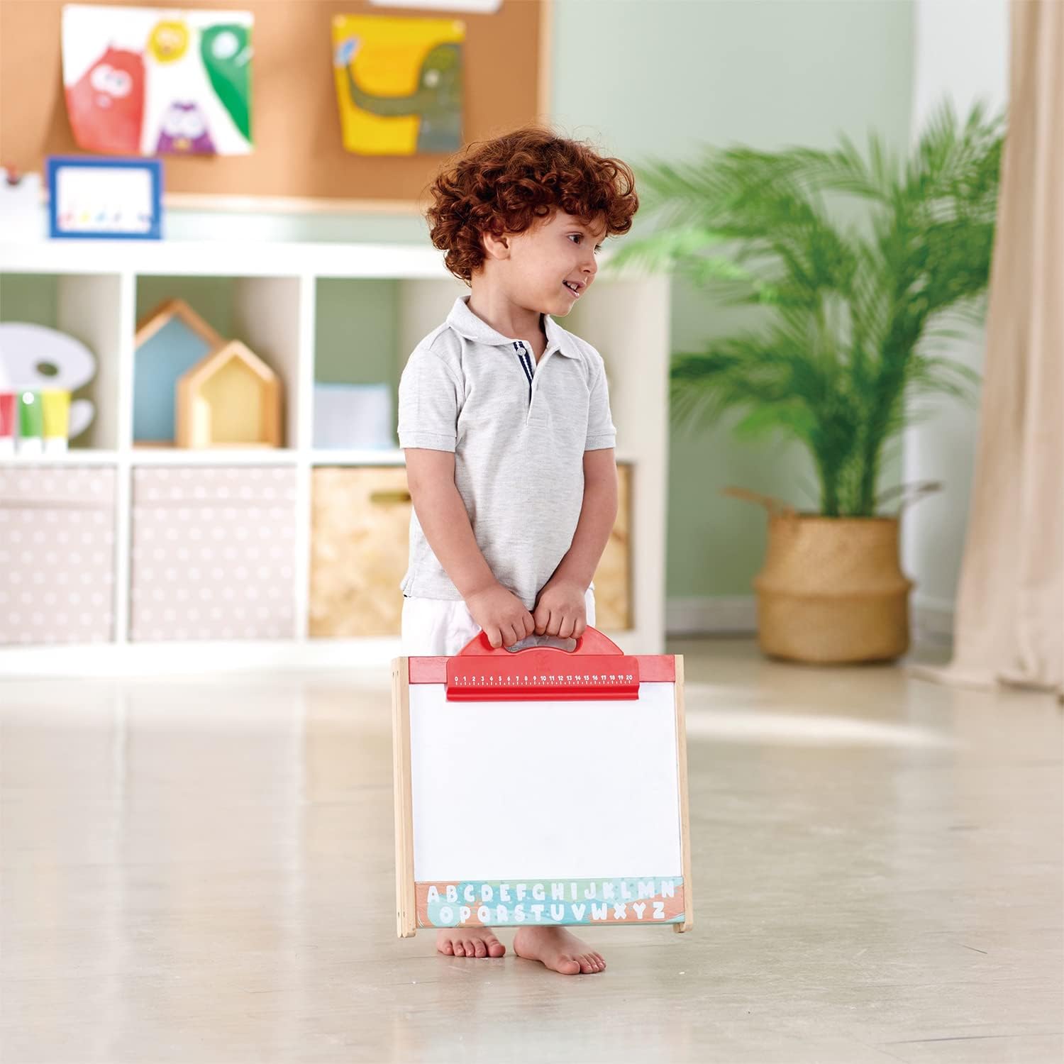 Cavalletto artistico a 2 lati: scatena la creatività del tuo bambino con questo affascinante cavalletto in legno 3 in 1 con lavagna e lavagna può fungere da custodia per il trasporto Include: 10 gessetti di diversi colori, 2 pennarelli, 1 porta gesso e 1 cancellino per massimizzare le tue capacità artistiche Archiviazione compatta: si chiude e si blocca per riporlo; gli accessori possono essere riposti all'interno del cavalletto piegato per tenere tutto in un unico posto Lavagna bianca magnetica: la lavagna magnetica contiene strumenti magnetici, numeri e lettere (venduti separatamente) Espandi la tua immaginazione: ideale per sviluppare l'espressione di sé, la creatività e l'immaginazione del tuo bambino; dimensioni (lunghezza x larghezza x altezza): 33 x 35 x 4,5 cm; peso: 1,4 kg