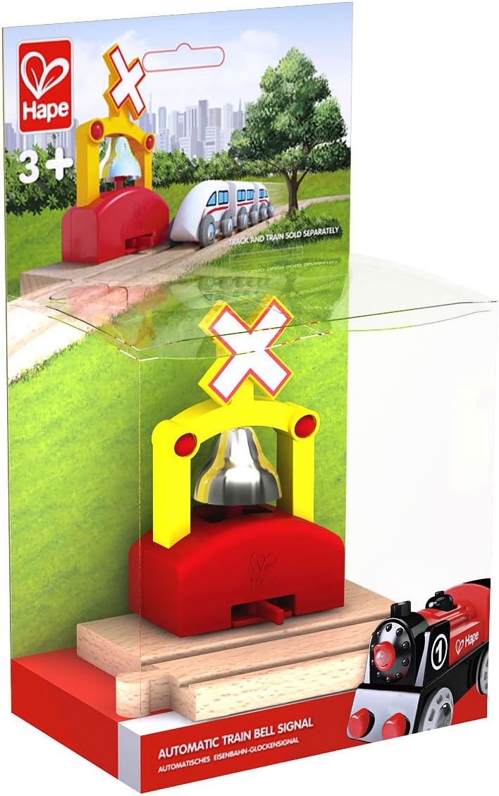 Campanello di segnalazione automatico: regala questo campanello di segnalazione a tuo figlio in modo che possa aggiungerlo alla sua collezione di binari del circuito ferroviario in legno. La campana suona automaticamente per annunciare l'arrivo del treno o della locomotiva sui binari! È anche possibile attivarlo manualmente, come un giocattolo sonoro. Fonte di intrattenimento: questo campanello di segnalazione si adatterà perfettamente alla collezione di binari in legno di tuo figlio. Questo giocattolo Hape, per bambine e bambini a partire dai 3 anni, permetterà al tuo bambino di divertirsi con l'assemblaggio dei pezzi della rotaia ma anche con i suoni attivati dal campanello. Gioco educativo per bambini - La nostra campana automatica, come tutti i giocattoli a circuito in legno per trenini Hape, stimolerà la mente logica e creativa del tuo bambino permettendogli di immaginare nuovi scenari grazie ai diversi giocattoli. Questo giocattolo in legno è ottimo anche per aiutarlo a sviluppare le sue capacità motorie. Compatibile con i marchi tradizionali: la parte del circuito in legno della campana di segnalazione automatica può essere assemblata con altri binari per giochi di circuiti ferroviari in legno. Ciò consentirà al tuo bambino di avere un circuito unico mescolando diversi giocattoli e parti di binari e creando così il proprio spazio di gioco. Hape - Marchio di fama mondiale di giocattoli in legno per l'apprendimento precoce e giochi educativi, il nostro obiettivo è sviluppare lo spirito di iniziativa dei bambini attraverso esperienze divertenti. Dal 1986 creiamo con passione giocattoli eco-responsabili, con i quali i bambini amano giocare mentre imparano e scoprono il mondo.