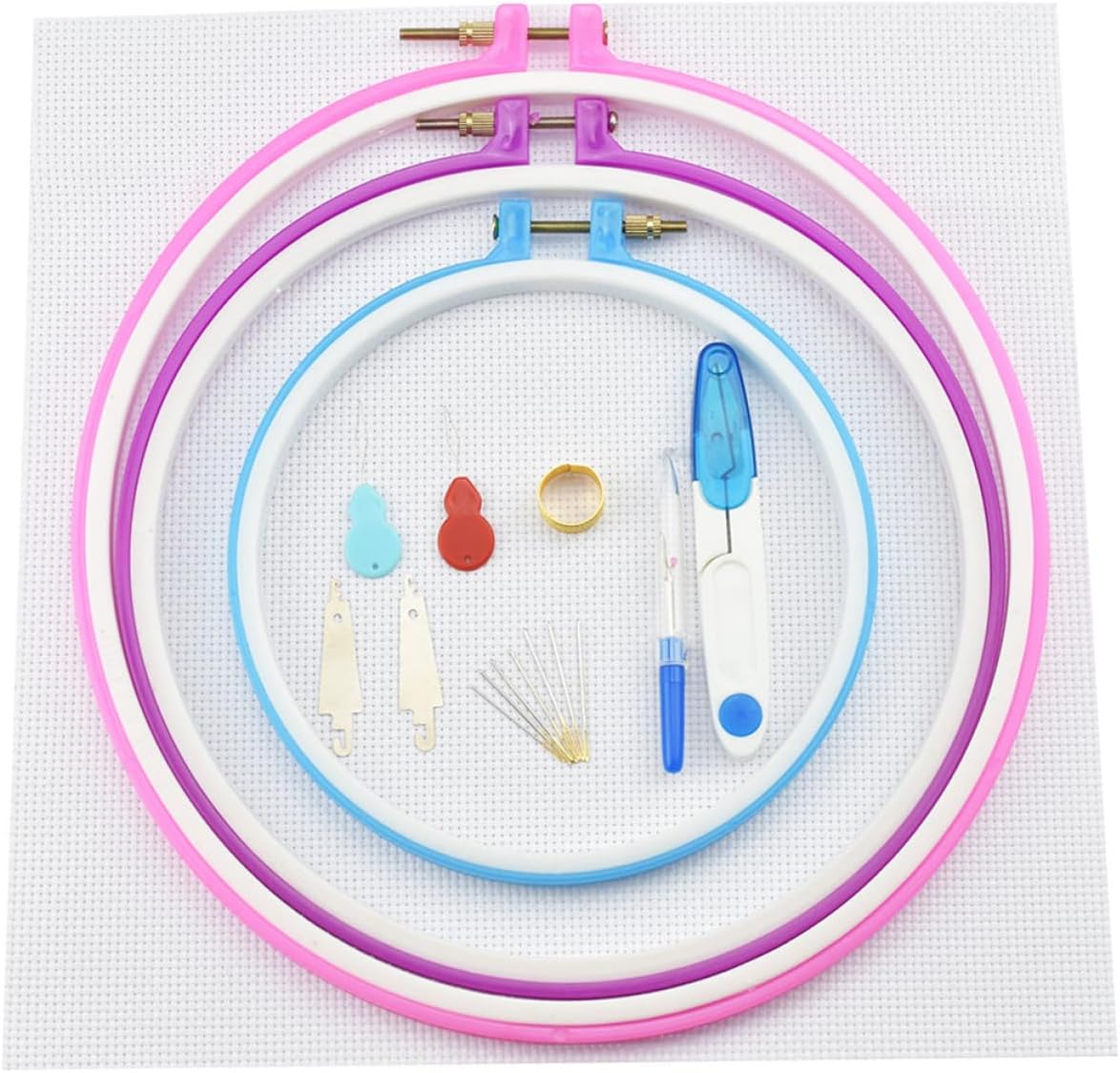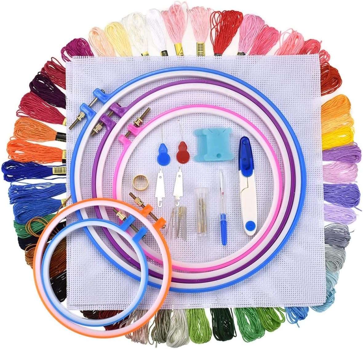 Cornici circolari da ricamo: questo articolo è un set di 5 telai da ricamo, di diverse dimensioni, strumento per punto croce Strumento per punto croce: ottimo per principianti o bomboniere a punto croce, cornici circolari da ricamo Filo da ricamo: sono ottimi per realizzare tutti i tipi di lavori artigianali, arti con l'ago alla pittura su stoffa, ai telai circolari da ricamo Kit di attrezzi artigianali: il da ricamo è realizzato in poliestere morbido, liscio e setoso, che è più flessibile e resistente, più flessibile, più durevole, preoccupazione per la formazione di pilling e/o cadute di , cornici circolari da ricamo