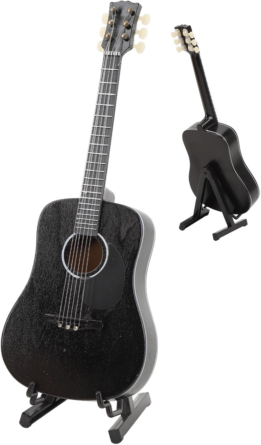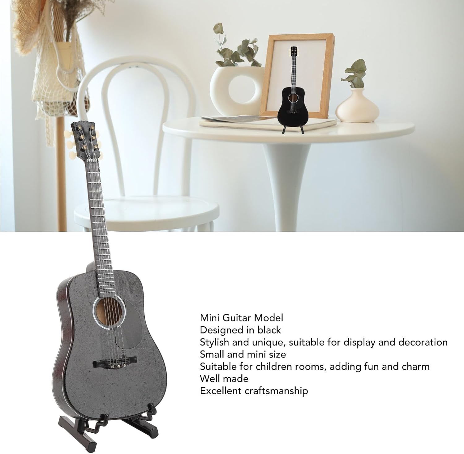 Decorazione elegante: questo squisito modello di chitarra classica è stato progettato in nero, elegante e unico, adatto per l'esposizione e la decorazione della tua casa. Ampie applicazioni - Il modello mini chitarra classica ha dimensioni piccole e mini, adatte per le stanze dei bambini e aggiunge divertimento e fascino, attirando la loro attenzione. Pregevole fattura: il mini ornamento per chitarra classica è ben realizzato e i dettagli sono presenti, mostrando una lavorazione squisita ed eccellente. Il simpatico mini ornamento per chitarra è la meravigliosa scelta di compleanno per bambini, amici, famiglia, amanti della musica, mostrando il tuo gusto e la tua cura. Bello e pratico: il mini ornamento per strumenti musicali adotta un design innovativo, che non è solo un ornamento ma anche un'opera d'arte che mostra il fascino della musica.
