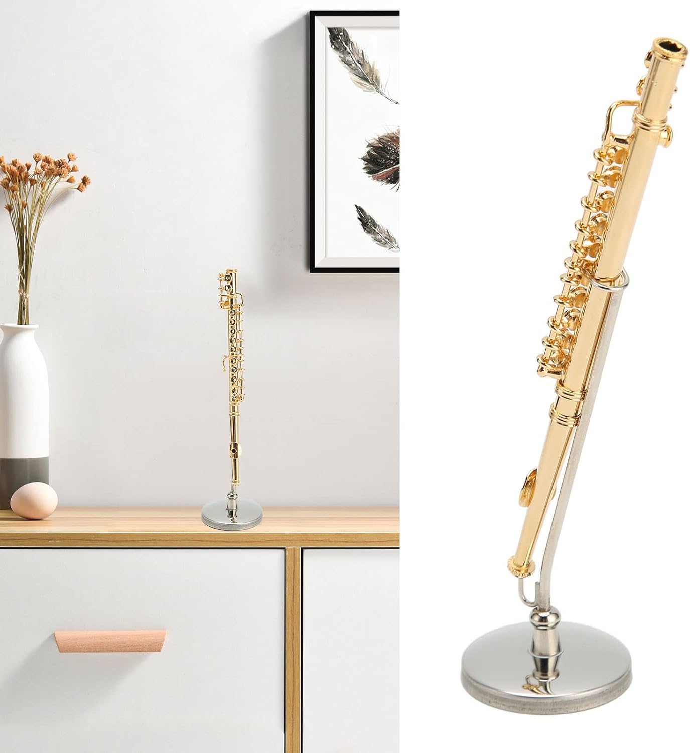 Esecuzione squisita: attenzione ai dettagli, aspetto simulato e realistico, mostra la tua estetica unica, replica dettagliata in miniatura del flauto (non riproducibile). Decorazione perfetta - Delicato e carino, bello e pratico, viene fornito con supporto per una facile visualizzazione, il modello di mini strumento musicale può essere un'ottima decorazione per la sala da musica, lo studio, ecc. Regalo meraviglioso: il modello di flauto in miniatura può essere un regalo significativo per musicisti, amanti della musica, persona cara, parenti, ecc. Nei compleanni e a Natale, fai loro una sorpresa. Materiale di alta qualità - Il modello mini flauto è realizzato in eccellente materiale di rame, ecologico, solido e robusto, antiurto e stabile, nessuna deformazione, resistente all'usura e durevole. Ampie applicazioni - Leggero e di piccole dimensioni, facile da riporre e trasportare, adatto a casa, bar, negozio di strumenti musicali, bar, negozio di giocattoli, ecc.