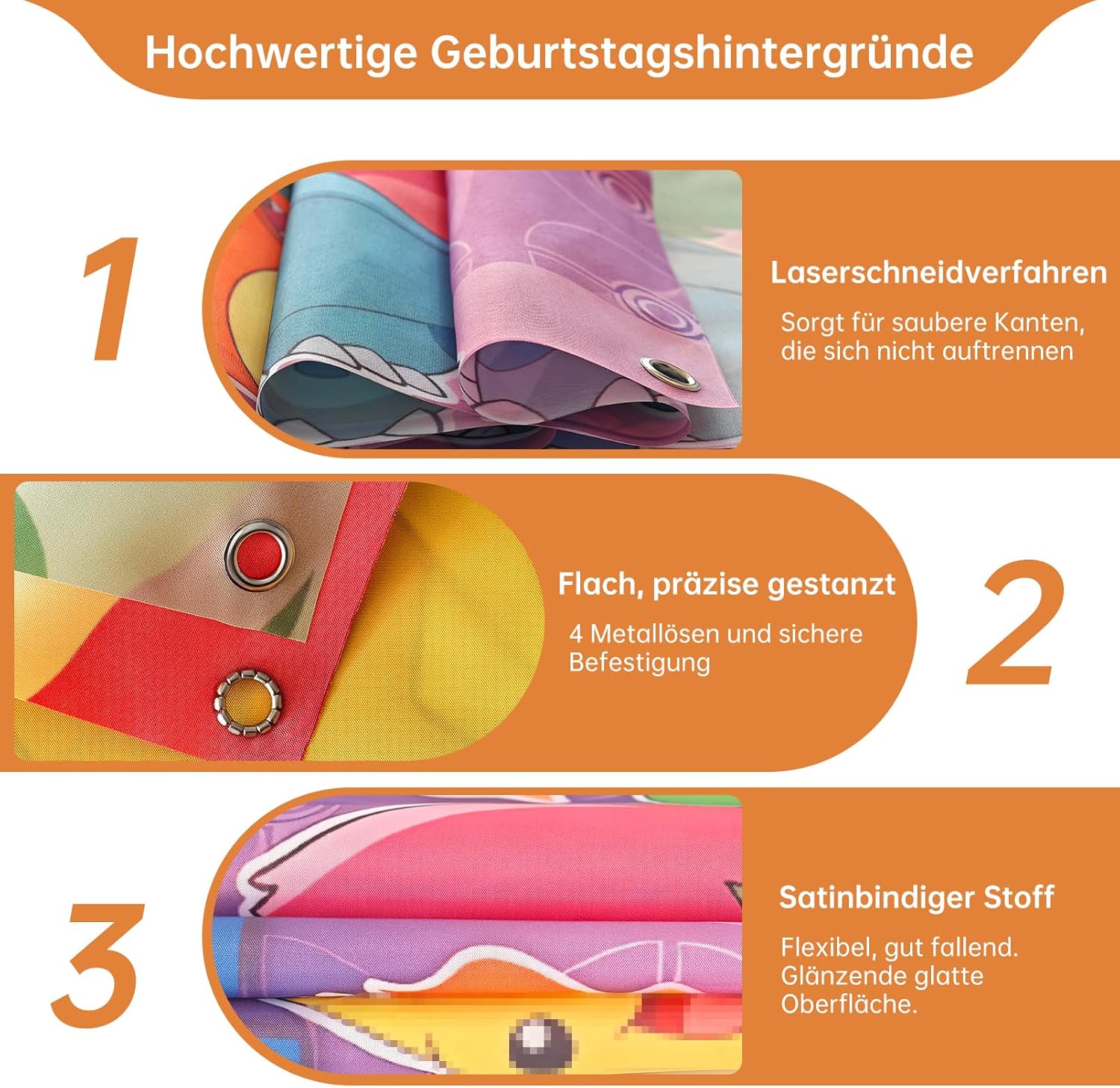 150 x 100 cm. Grande striscione di compleanno. Perfetto come sfondo da parete: con 150 cm di larghezza x 100 cm di altezza, questo striscione di compleanno di grande formato copre facilmente pareti o aree di festa. Stampato con scritta Happy Birthday e motivi colorati dei cartoni animati (torte, palloncini), ideale per decorazioni di compleanno per bambini. Anche durante le attività selvagge, il design rimane completamente visibile! Tessuto in poliestere di alta qualità Facile da pulire: realizzato in poliestere resistente, delicato sulla pelle e resistente. Lavabile a 30 °C con programma delicato, rimuove in modo affidabile i residui di decorazione per torte. L'asciugatura all'ombra impedisce la perdita di colore e il cambiamento di forma. Colori vivaci grazie alla stampa digitale Happy Birthday Design: stampa ad alta precisione con colori vivaci e contorni nitidi. Modello universale a cartone animato combinato con elementi Happy Birthday, perfetto per decorazioni di compleanno per bambini e appassionati di anime. 4 occhielli in metallo per una facile decorazione: gli occhielli rinforzati agli angoli consentono di appenderla con ganci o nastri. Utilizzabile come decorazione da sfondo, decorazione da tavolo (ambiente asciutto) o decorazione da parete pieghevole, ideale per feste di compleanno decorazione a casa. Decorazione di grande formato: utilizzabile come striscione di compleanno o sfondo da parete, utilizzabile anche come base artigianale per bambini. Riutilizzabile e pieghevole per risparmiare spazio, soluzione pratica per feste sostenibili.