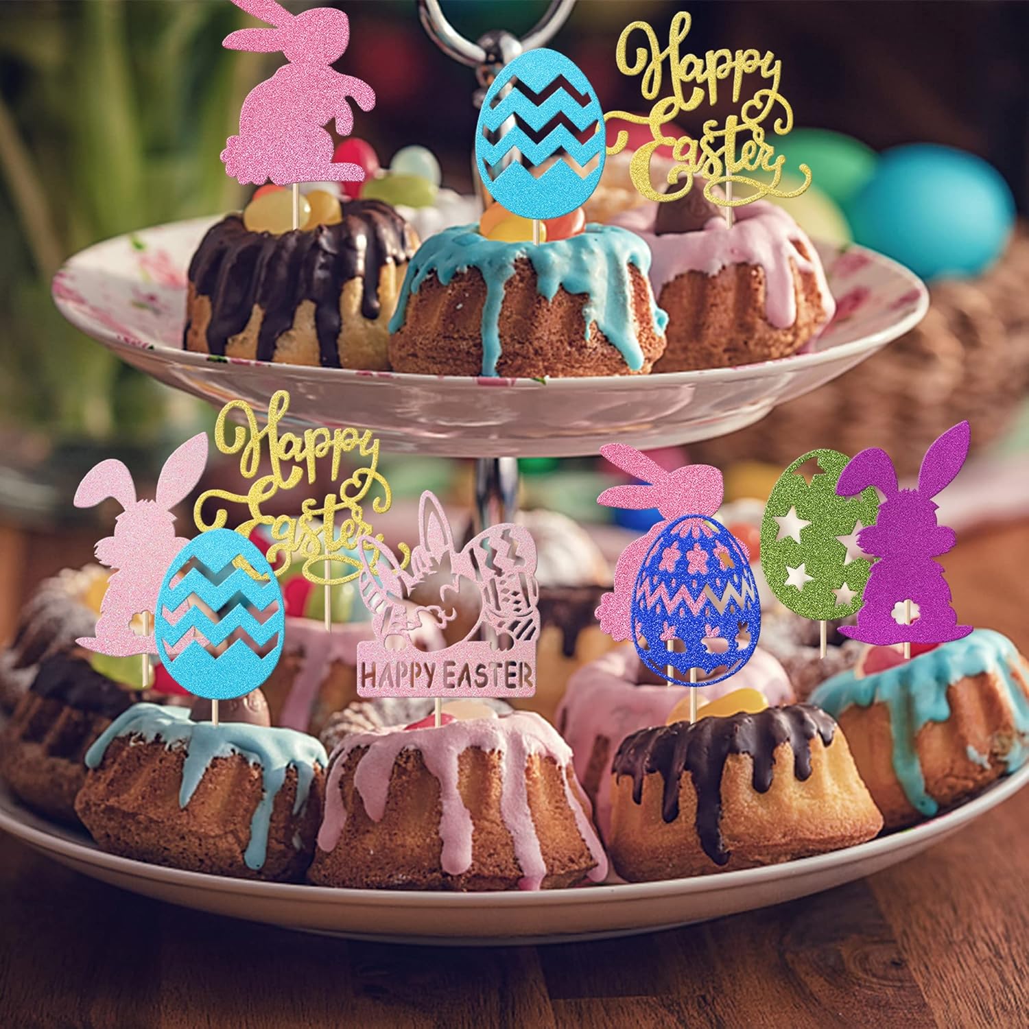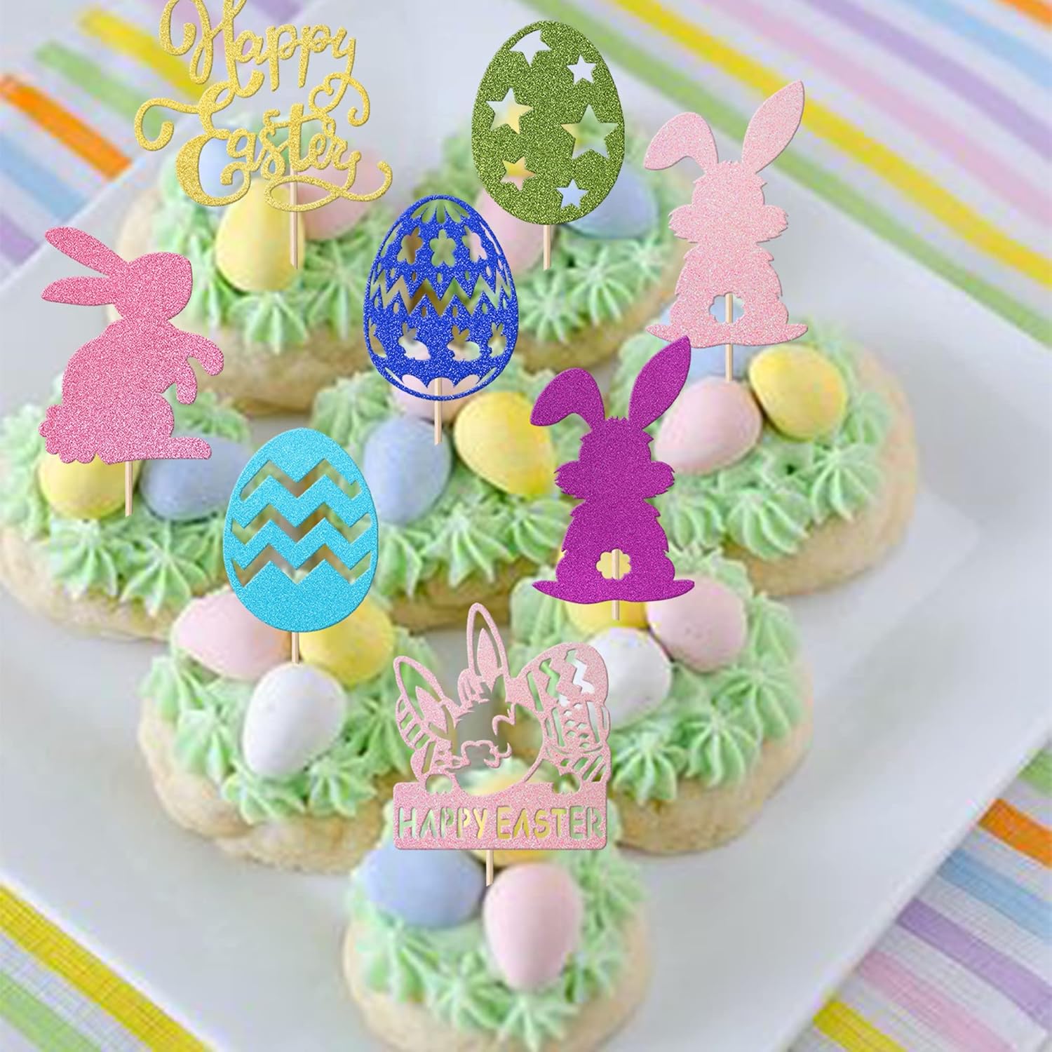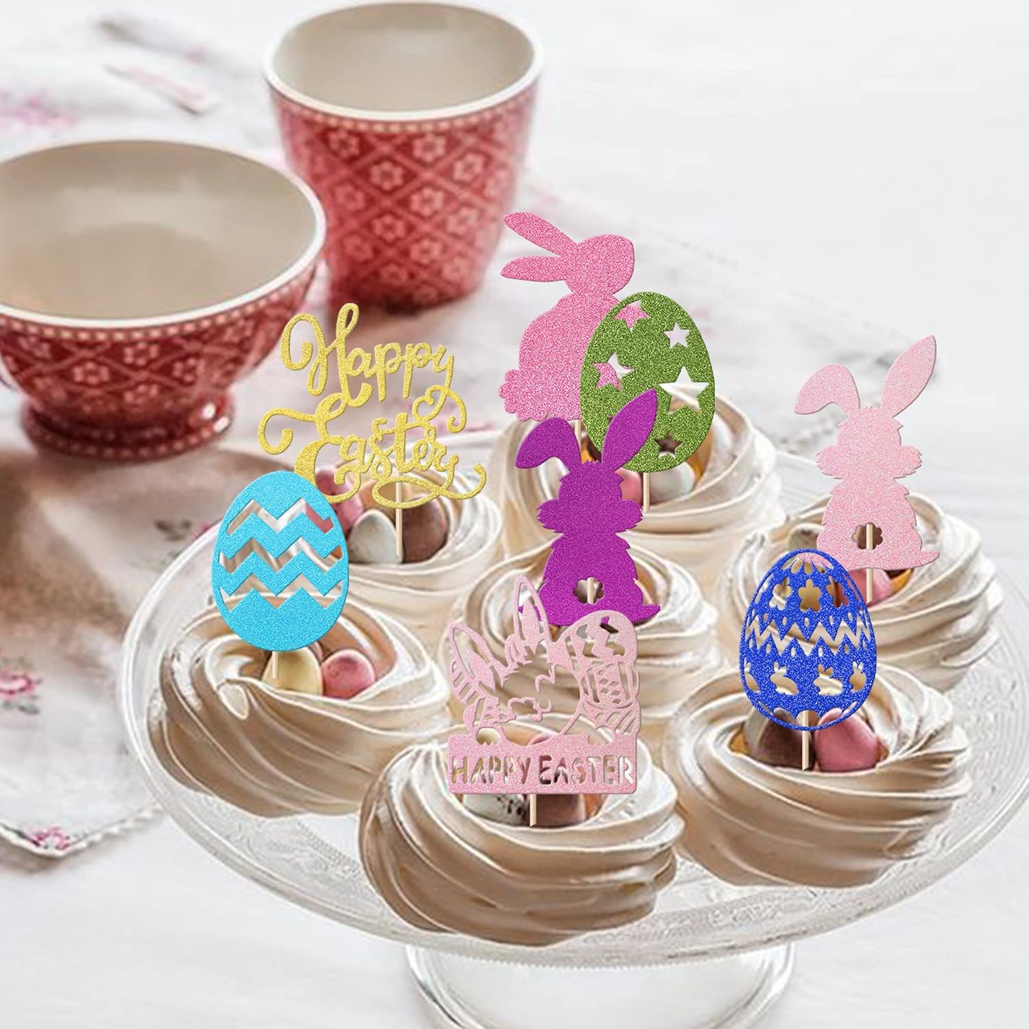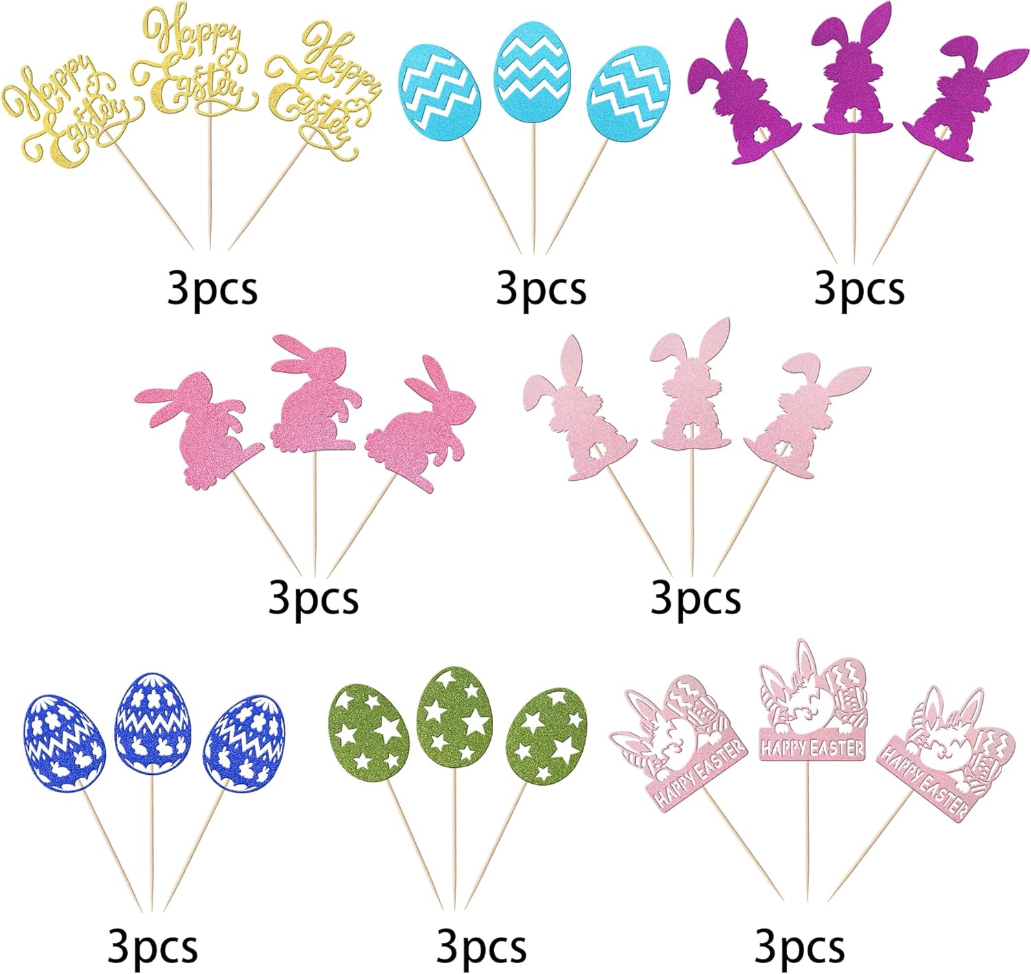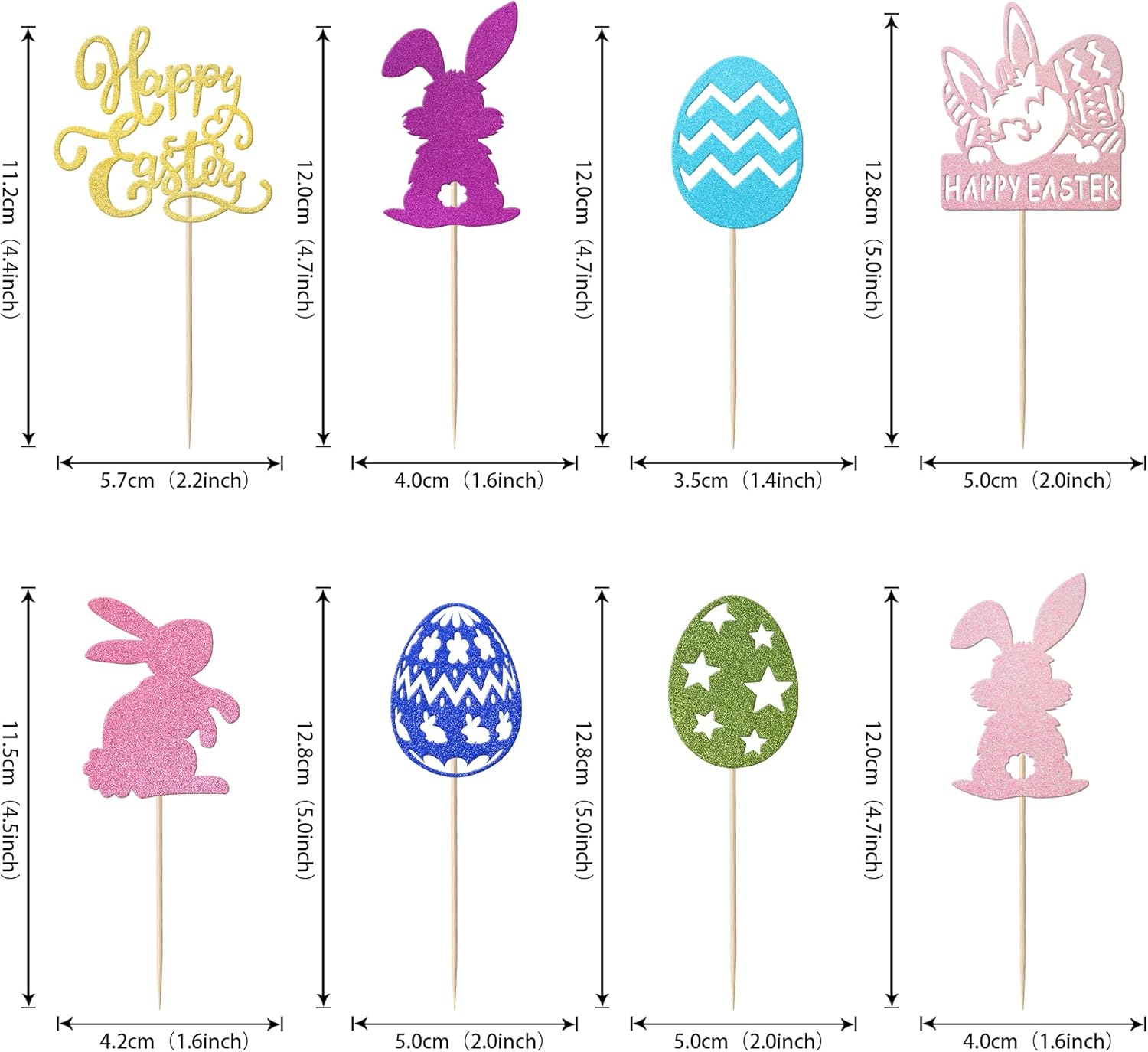 Materiale: i nostri toppers per cupcake sono realizzati in cartone spesso glitterato di alta qualità e bambù per uso alimentare, sono atossici, inodore e non facili da rompere, il che li rende sicuri e affidabili. Confezione: contiene 24 toppers per cupcake che possono soddisfare le diverse esigenze di decorazione, questi toppers per cupcake sono preassemblati, puoi usarli direttamente quando li ricevi. Dimensioni: La dimensione è 2,4 x 4,6 pollici / 2,2 x 4,2 pollici / 2,4 x 4,8 pollici / 2,4 x 4,3 pollici / 2,3 x 4,6 pollici / 2,2 x 4,8 pollici con bastoncino) Applicazione: Decorazione perfetta per cupcake, biscotti, torte, frutta, brownies, gelati e altro, particolarmente adatto per feste a tema di buona Pasqua, feste a tema coniglietto, feste a tema pasquale, feste di compleanno a tema bambino, festa di compleanno per bambini, forniture per la decorazione di cupcake per feste di compleanno. Suggerimenti: la nostra massima priorità è la vostra soddisfazione. Se non sei assolutamente soddisfatto del prodotto, ti rimborseremo completamente. Questi toppers per cupcake non sono commestibili e sono destinati alla decorazione, si prega di non utilizzarli nel forno o nel microonde.