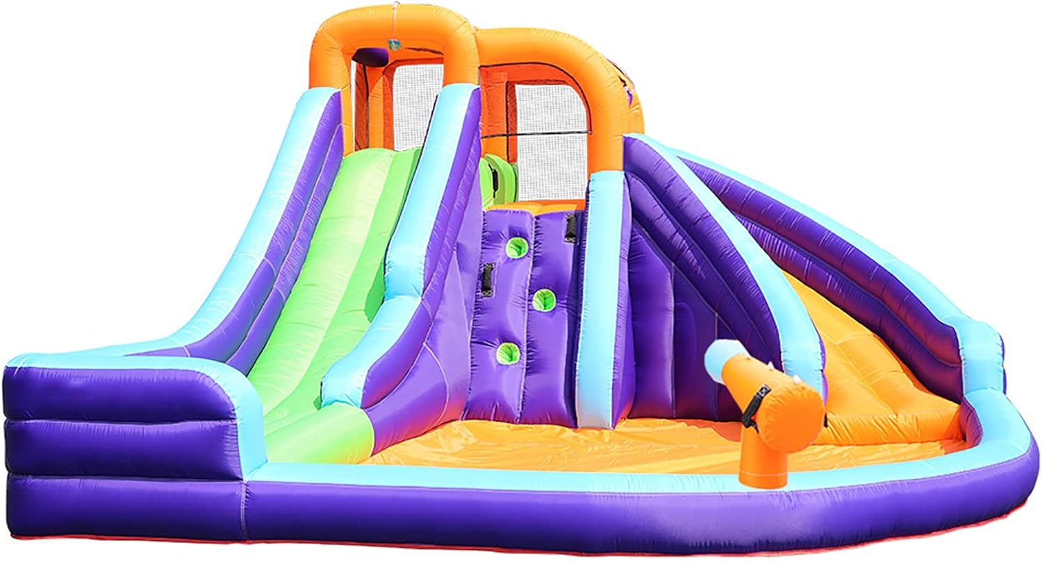 Castello gonfiabile gonfiabile per bambini. Dimensioni: 200 x 200 x 160 cm. Montaggio rapidissimo e senza sforzo (pochi minuti, fornito con ventola permanente). Massima sicurezza: reti laterali di protezione, polsini a nido d'ape e sistema di piastre di pressione sul fondo (4 punti). Per un massimo di 2 giocatori contemporaneamente.