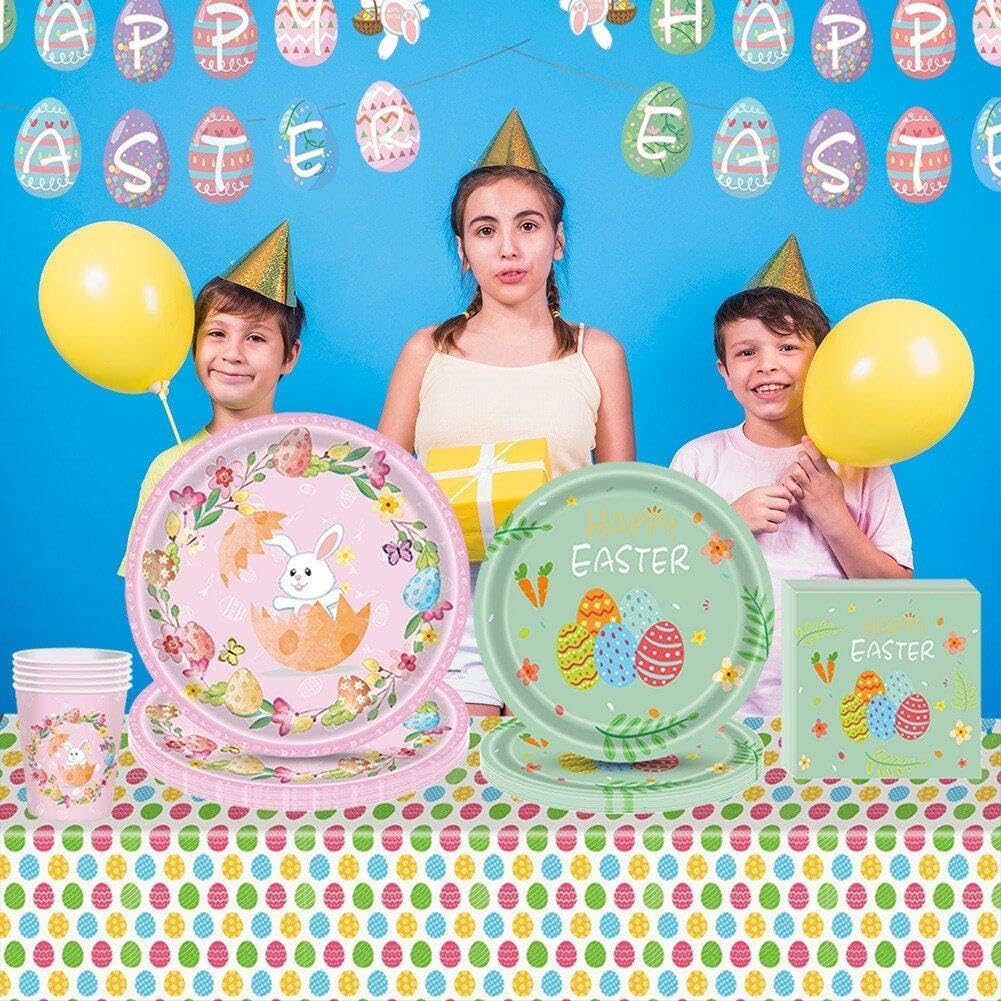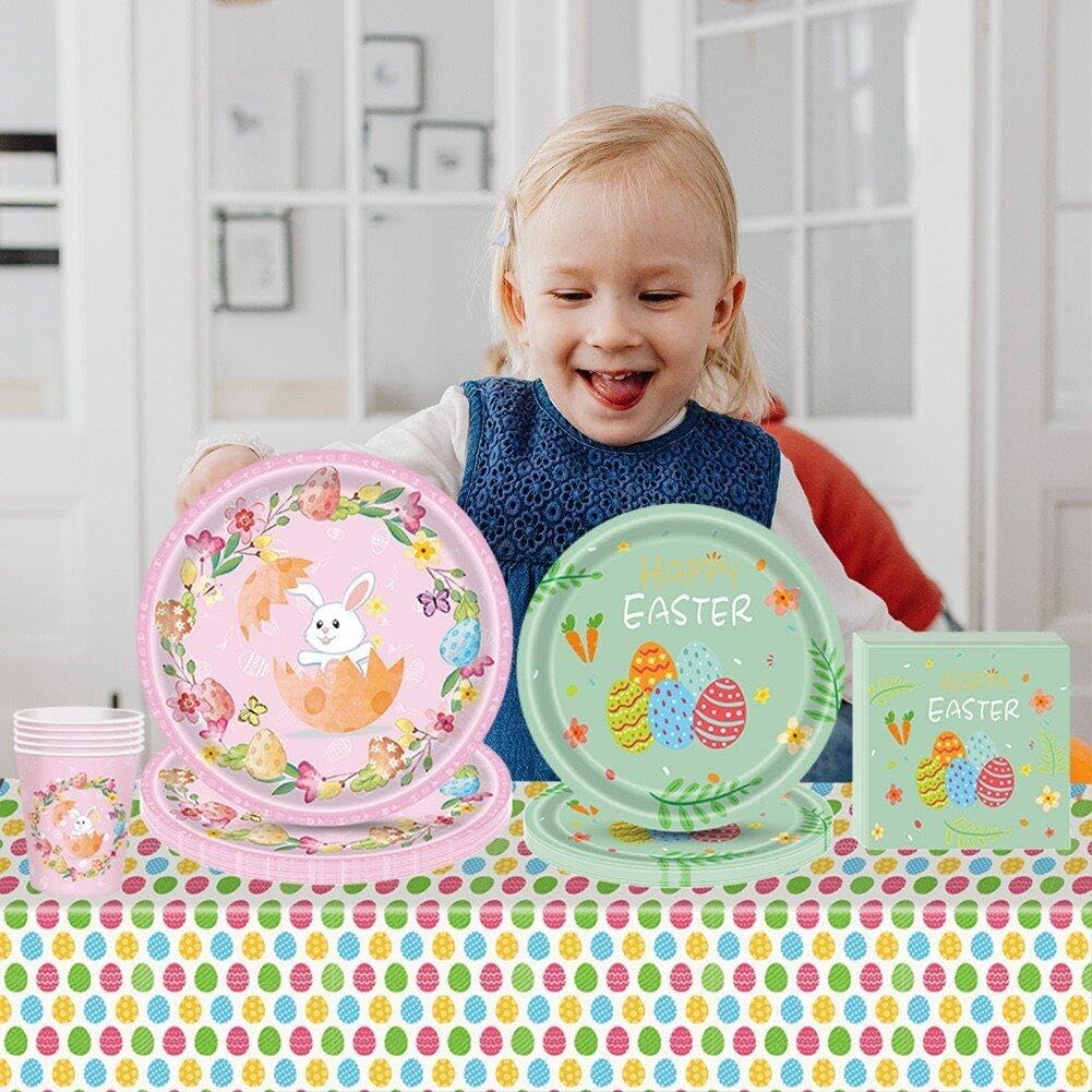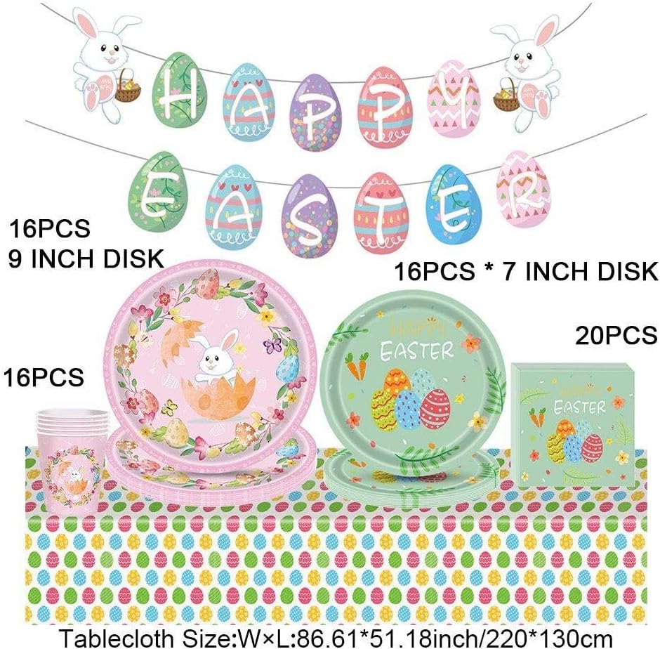 Ampiamente usato: le nostre stoviglie pasquali sono molto adatte per la celebrazione della Pasqua a casa, in ufficio, al chiuso o in luoghi di ritrovo. Come parte delle forniture pasquali, sono leggere e facili da trasportare. Forniture per feste di buona Pasqua: il set di stoviglie per piccoli animali con conigli adorabili può rendere indimenticabile la tua fantastica festa primaverile. Materiale: i piatti e i tovaglioli pasquali sono realizzati in carta di alta qualità. La tovaglia pasquale è realizzata in plastica, impermeabile, a prova di schizzi e facile da pulire. Incluso: 16 piatti da 7 pollici, 16 piatti da 9 pollici, 16 bicchieri di carta, 1 tovaglia, 20 tovaglioli di carta, 1 ghirlanda di striscioni. Buona Pasqua. Decorazioni perfette per le feste di Pasqua: queste posate pasquali sono la scelta ideale per feste e celebrazioni pasquali. Mettili in tavola per immergere tutta la famiglia nell'atmosfera pasquale.
