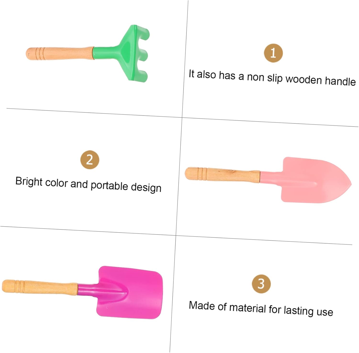 Giocattolo con attrezzi da giardino: dotato di manico in legno antiscivolo, colori vivaci e design portatile, mini attrezzo da giardino Mini attrezzi da giardino: questi attrezzi sono un fantastico e divertente per i vostri o bambine, giocattolo da giardino Attrezzo da giardino in legno: ogni set include una cazzuola, un rastrello e una pala, mini attrezzo da giardino Attrezzo da giardino per - realizzato in materiale per un uso duraturo, mini attrezzo da giardino Attrezzo da giardino colorato: , facile da impugnare e molto sicuro, mini attrezzo da giardino