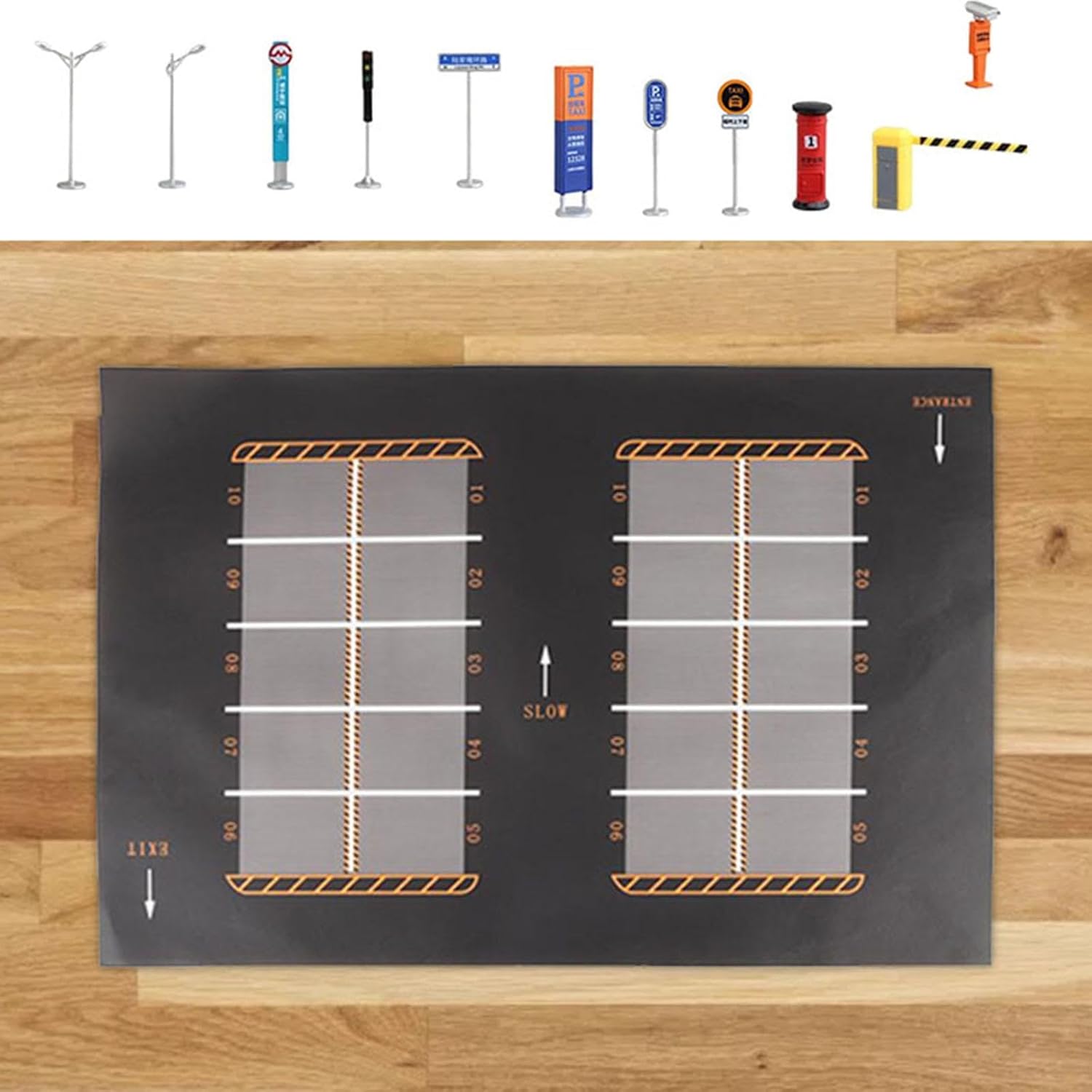 【Varietà di scene di parcheggio】: il set include vari segnali di scene di parcheggio come ingressi, uscite, segnali di guida ecc., offrendo ai bambini un'esperienza di apprendimento completa sulle regole del parcheggio. 【Materiale】: realizzato in materiali PP in tessuto non tessuto, questo set di tappetini per parcheggi di grandi dimensioni può resistere all'uso ripetuto di e accessori, garantendo un gioco a lungo termine. 【Parcheggio in scala 1/64】: questo set di scene di parcheggio per modelli di infrastrutture stradali in miniatura in scala 1/64 è adatto per creare scene realistiche con le tue e accessori. 【Ottimo per collezionisti】: ideale per creare diorami in scala 1/64, esporre il tuo garage e allestire piste da corsa come il set di piste per slot car. 【Esposizione di scene】: caratterizzato da un design dettagliato del parcheggio, questo tappetino è ottimo per giocare con le e altri modelli di garage sotterranei in scala 1/64