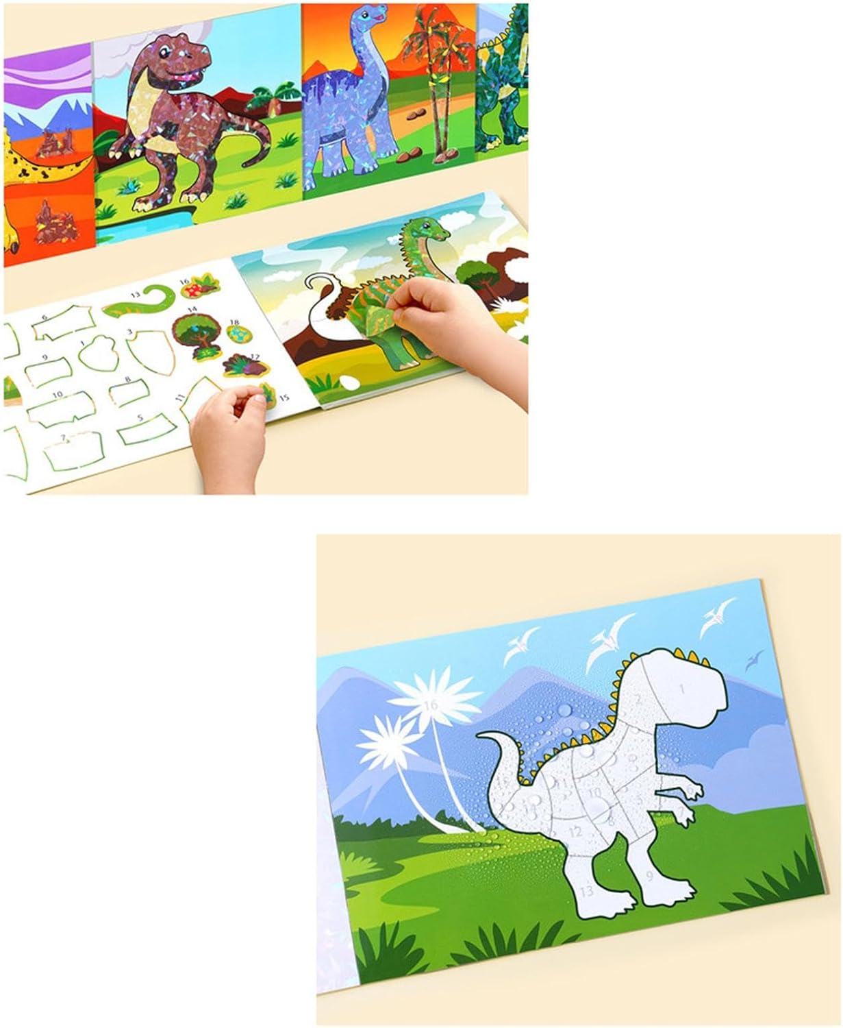 【Attività fai da te facile e divertente】: i bambini devono semplicemente abbinare i numeri e le forme per creare le proprie scene di dinosauri colorate, rendendolo un progetto pratico coinvolgente e divertente 【Materiale cartaceo】: Realizzato in carta spessa, adatta ai bambini. Il lato anteriore è per attaccare adesivi, mentre il retro può essere colorato con vari strumenti artistici. 【Adesivi riutilizzabili】: Presentano adorabili disegni di animali con finitura. adesivi possono essere staccati senza lasciare residui appiccicosi. 【Regalo per bambini】: il libro di adesivi da colorare è ideale sia per l'intrattenimento domestico che per quello in viaggio. Questo libro di adesivi creativo è una splendida scelta regalo per compleanni o feste per bambini. 【Benefici educativi e di sviluppo】: di adesivi incoraggiano le capacità motorie fini, la concentrazione, la creatività, le capacità di osservazione e la coordinazione occhio-mano