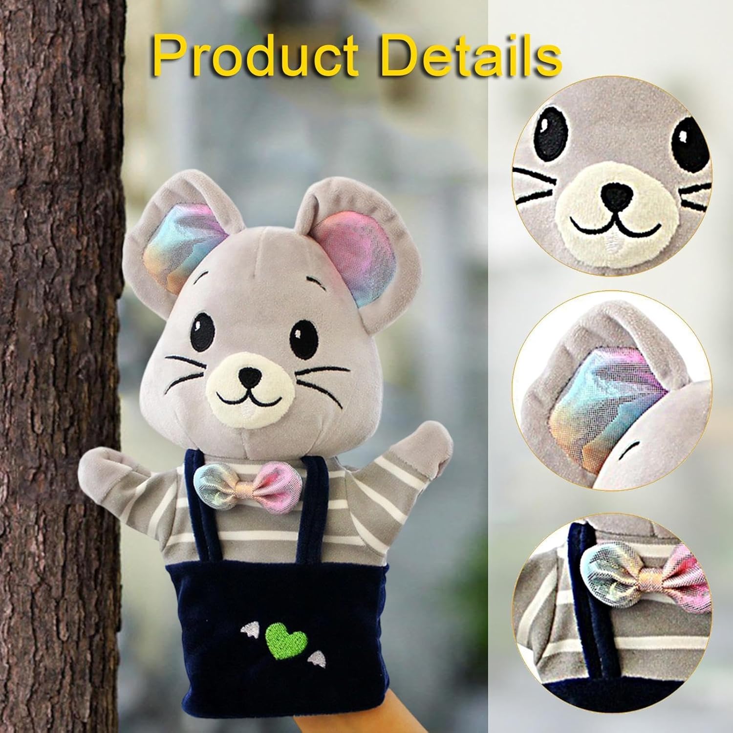 【Design carino】: adorabile burattino da mano per bambini con un design a cartone animato con grandi occhi vivaci, orecchie rotonde e un aspetto peluche per attirare immediatamente l'attenzione dei bambini e portare gioia durante il gioco 【Materiale didattico precoce】: peluche funge da strumento educativo per l'asilo nido, stimolando l'immaginazione e la creatività attraverso la narrazione e attività didattiche interattive 【Dimensioni】: Marionetta giocattolo a forma di topo di dimensioni compatte (circa 24 cm di altezza) con una struttura leggera, che la rende facile da manipolare per le manine dei più piccoli ed è ideale come regalo festivo per l'anno del topo. 【Giocattolo educativo】: il peluche a forma di animale per bambini piccoli migliora il divertimento interattivo incoraggiando fantasioso e il gioco di ruolo creativo, aiutando i bambini a esprimere e a sviluppare capacità comunicative 【Materiale di qualità】: il pupazzo di peluche è realizzato con materiali di peluche di qualità, morbidi, delicati sulla pelle e comodi da indossare a lungo, garantendo durata e una piacevole esperienza tattile