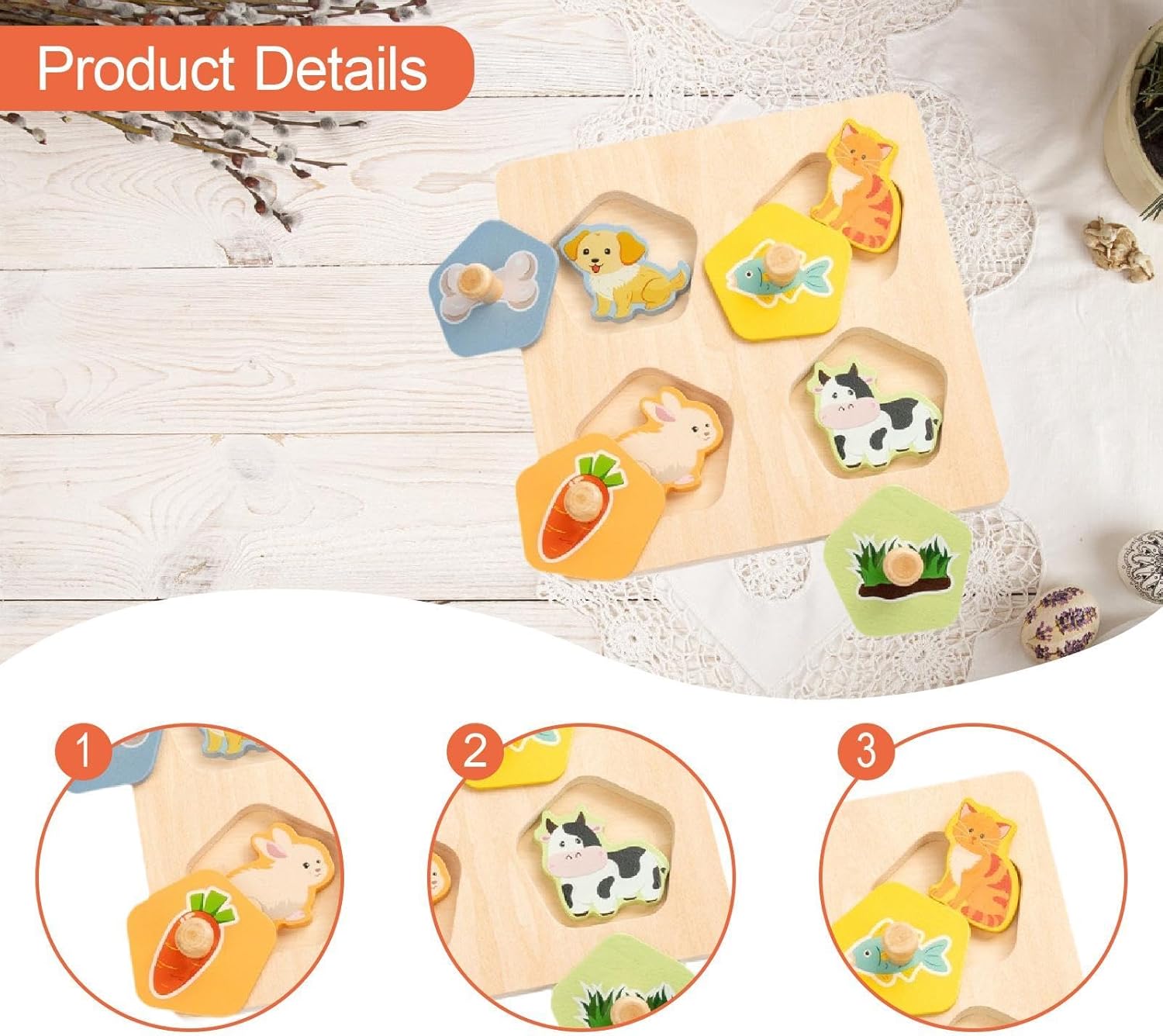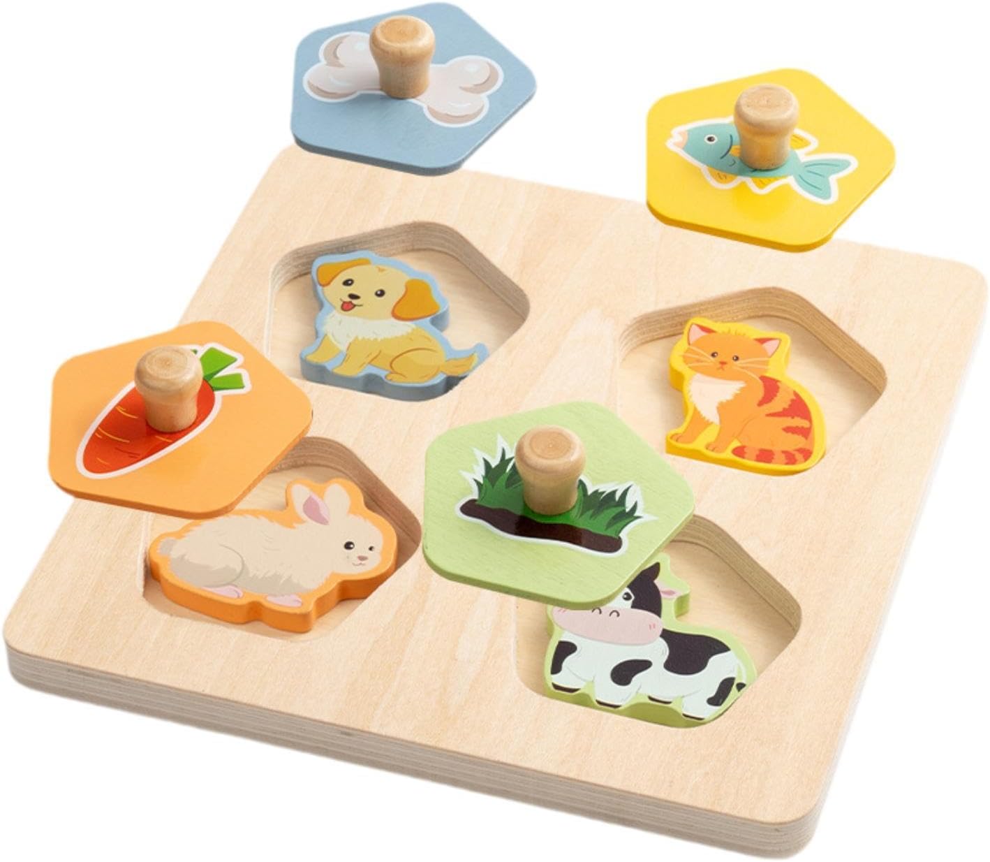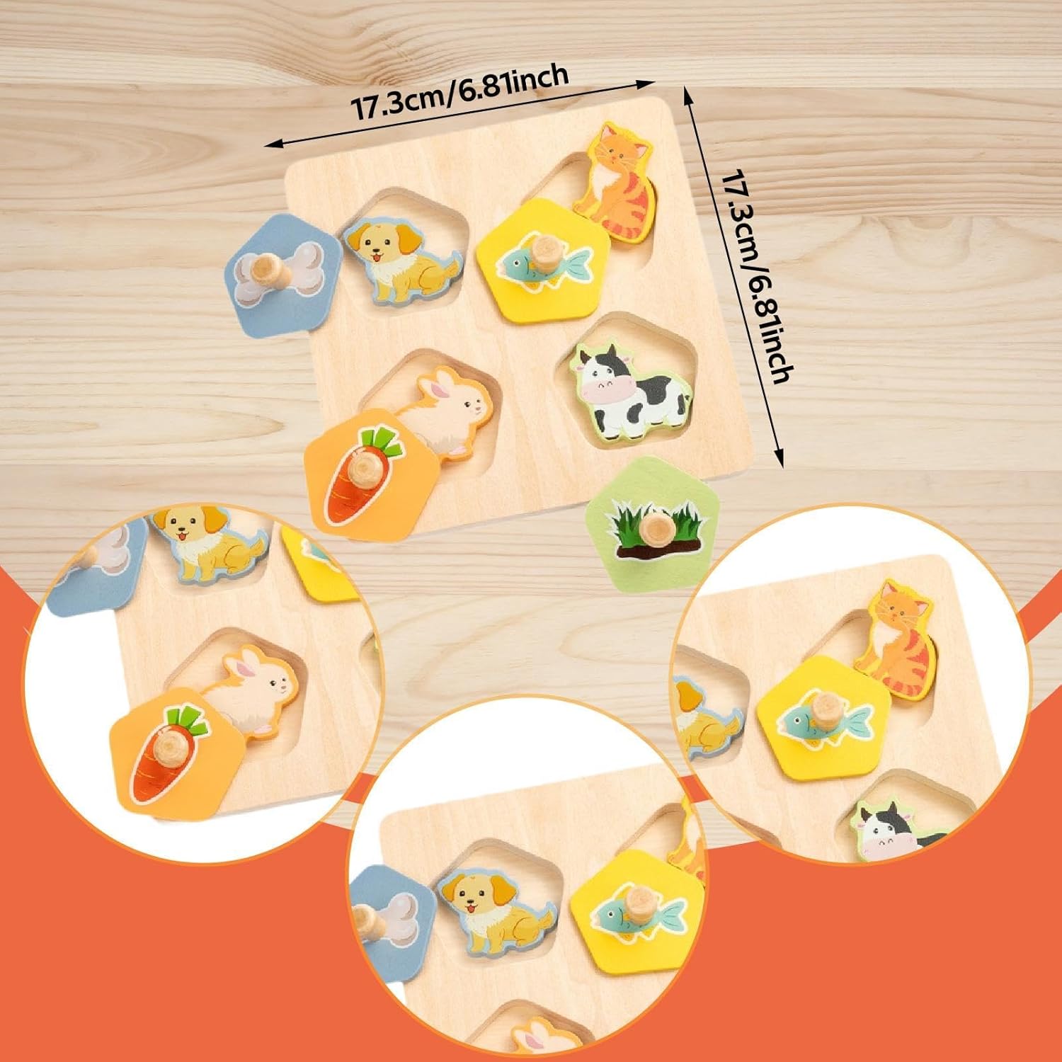 【Materiale】: Realizzato in legno, questo in legno per bambini è progettato per resistere ai rigori del gioco senza deformarsi o rompersi 【Coinvolgente in legno】: Questo delizioso in legno presenta disegni vivaci. Offre ore di intrattenimento per il tuo bambino ed è progettato con manopole facili da afferrare per le manine dei più piccoli. 【Dimensioni compatte e set completo】: misurando 17,3 cm x 17,3 cm / 6,81 pollici x 6,81 pollici, questo set di ha le dimensioni perfette per le mani piccole e viene fornito come set completo per offrire divertimento educativo . 【Strumento di apprendimento prescolare】: Specificamente progettato per migliorare le capacità motorie fini, la coordinazione occhio-mano e le capacità di osservazione nei bambini piccoli. Incoraggia l'esplorazione attraverso l'abbinamento di colori e motivi diversi. 【Gioco versatile】: costruito per resistere a sessioni di gioco entusiasmanti ovunque tu scelga di portarlo, rendendolo una ideale per l'apprendimento prescolare pur essendo abbastanza robusto per l'uso quotidiano