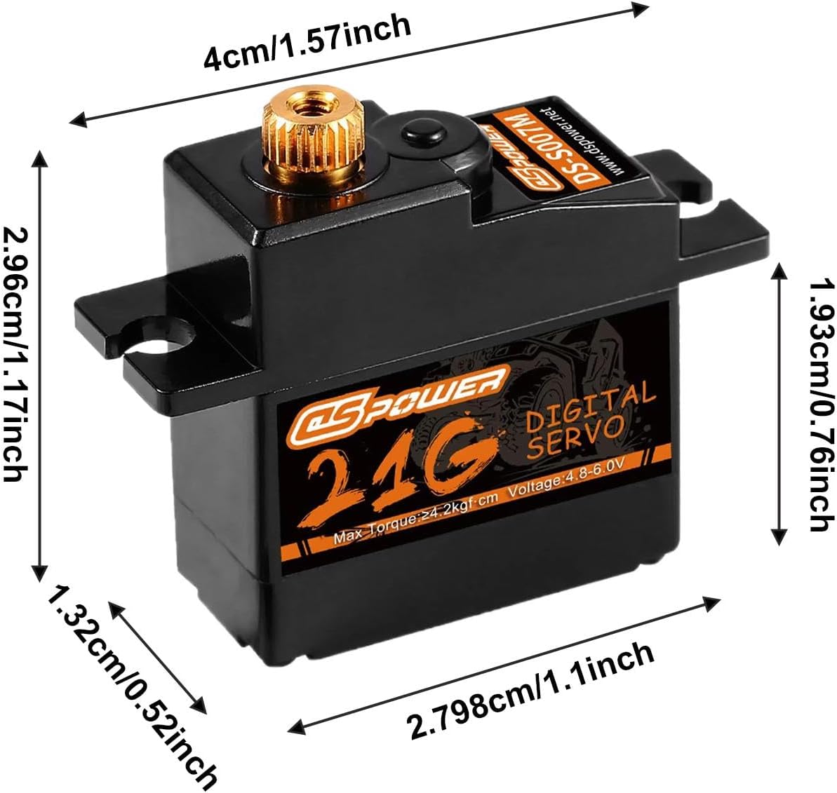 【Ottimo aggiornamento per la tua auto RC】: l'ingranaggio in metallo da 21 g per modelli in 1/12 è adatto per MN82, MN99S, MN168, MN78 e , cingolati e camion RC 【Specifiche dettagliate】: Questo servo 21G funziona con una tensione standard da 4,8 6,0 V . Presenta dimensioni compatte di 2,96 cm x 1,32 cm x 4 cm/1,17 pollici x 0,52 pollici x 1,57 pollici per un facile montaggio e vanta un ampio angolo operativo massimo di 180° 【Cosa ottieni】: Ogni confezione contiene un servo digitale 21G completo, per essere installato nel tuo veicolo RC 【Ingranaggi in metallo e design impermeabile】: Progettato con robusti ingranaggi in metallo in di sopportare carichi elevati e resistere allo strappo. La costruzione impermeabile consente di affrontare con sicurezza terreni bagnati e fangosi senza rischiare danni. 【Prestazioni digitali ad alta coppia】: il servo digitale fornisce una coppia impressionante fino a 4,20 kgf·cm a 6,0 V. Goditi tempi di risposta rapidi e bassa rumorosità operativa per un'esperienza di guida migliorata