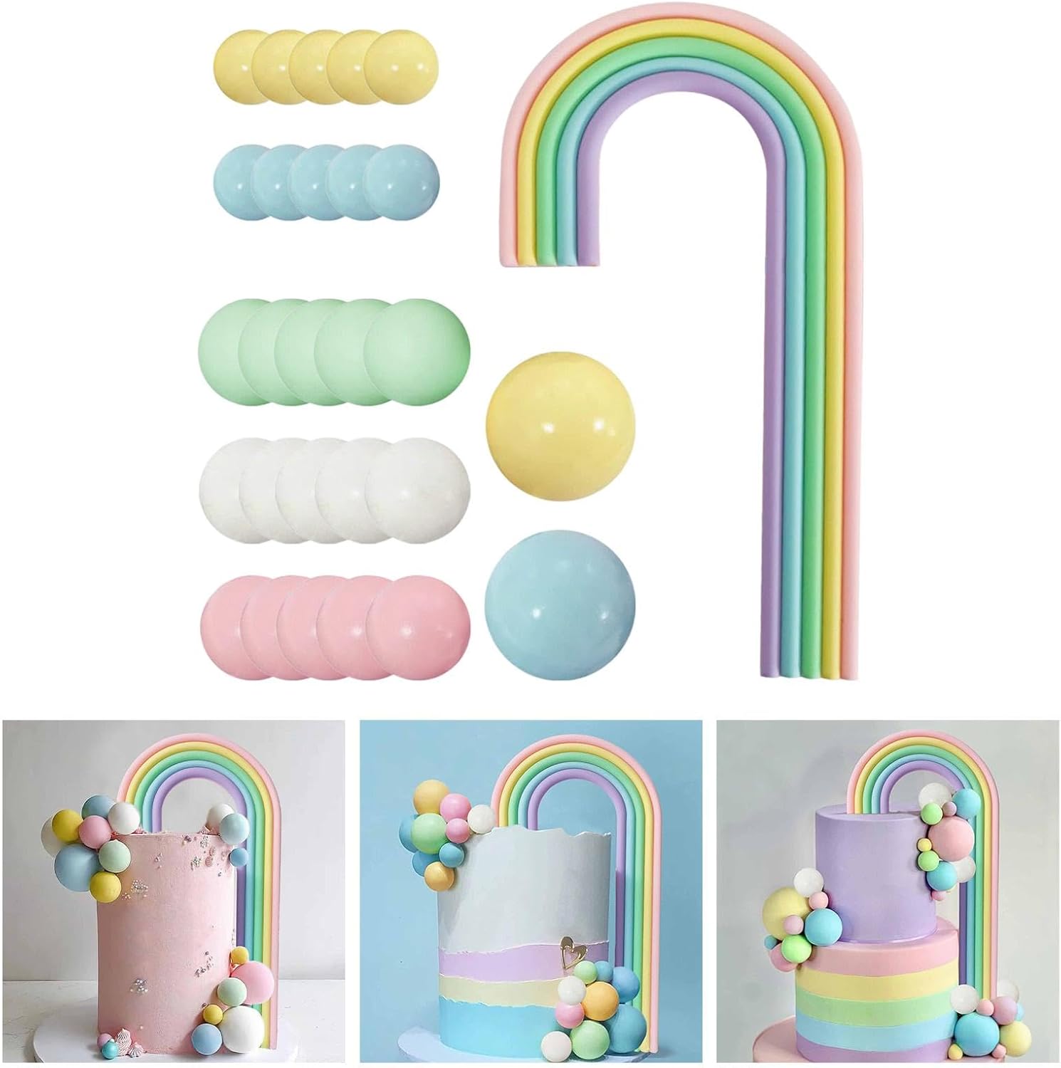 Occasione: le decorazioni per feste a tema arcobaleno sono ideali per feste di compleanno, eventi a tema principessa, shower e raduni a tema oceano Set completo da 28 pezzi: include 1 topper per torta arcobaleno a forma di macaron e 27 palline colorate di varie dimensioni, ideali per decorazioni per feste. Dimensioni versatili: include un grande topper arcobaleno (5 x 9,5 pollici) misure di palline decorative (0,8, 1,2 e 1,6 pollici) per design dinamici per torte Materiale: decorazione arcobaleno realizzata in robusta pasta polimerica; palline di schiuma leggera per torte e riutilizzabili per più celebrazioni Ideale per qualsiasi celebrazione: esalta matrimoni, compleanni, shower o feste a tema arcobaleno con un fascino accattivante, ottimo per torte, centrotavola
