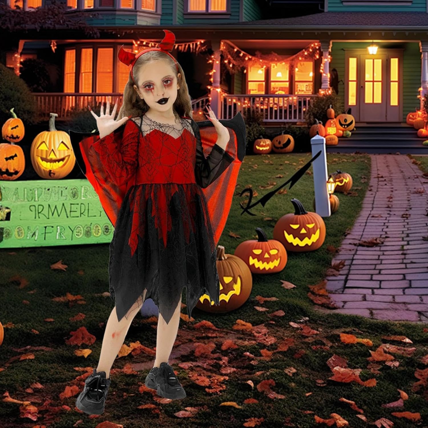 Descrizione: - 【Incantevole design a ragnatela da pipistrello】: questo costume presenta un sorprendente motivo a ragnatela sull'abito ed eleganti detta ad di pipistrello, che lo rendono perfetto per un look spettrale ed elegante da pipistrello o da strega moderna - 【Set completo di costumi】: ottieni tutto il necessario per un look completo . Questo set include un vestito a ragnatela, 1 paio di pipistrello staccabili e una fascia per capelli abbinata per completare l'incantevole vestito. - 【Comodo e leggero】: rezzato in morbido poliestere, questo costume è progettato per il comfort durante ore di gioco. La leggerezza assicura che il tuo bambino possa correre, saltare ed esibirsi sul palco senza sentirsi appesantito o limitato - 【Versatile per ogni occasione】: Ideale per Halloween, questo costume è perfetto anche per le attività all'asilo, le rappresentazioni teatr scolastiche, le feste di compleanno a tema, eventi cosplay e i travestimenti fantasiosi di tutti i giorni. È una splendida aggiunta alla collezione di costumi di ogni bambino. - 【Facile da indossare e rimuovere】: il nuovo costume di Halloween presenta un design semplice che consente di indossarlo e rimuoverlo facilmente, creando immediatamente un look divertente con il minimo sforzo Specifica: - Materiale: poliestere Tabella di formato: - S: Lunghezza gonna 65 cm/25,59 pollici, Busto 72 cm/28,35 pollici, Lunghezza manica 36 cm/14,17 pollici, Per altezze 105 cm-115 cm/41,34 pollici-45,28 pollici;