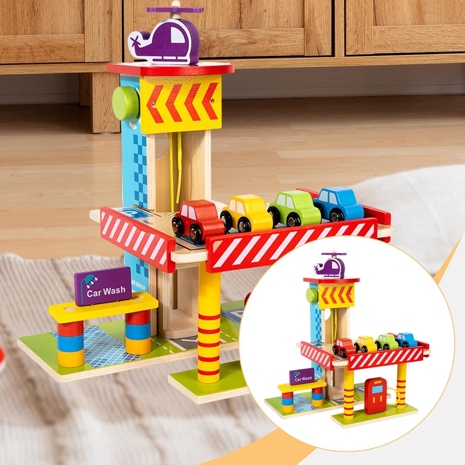【Set regalo per giochi di ruolo in auto】: questo set da gioco Play Garage è un ottimo regalo adatto a varie festività e occasioni 【Interattivo】: il set da gioco per auto giocattolo da garage è ottimo per l'immagina e la narra, gioco di ruolo fantasioso interattivo 【Set da gioco per garage】: questo set da gioco per garage in legno è un giocattolo di fin in legno per bambini, che un ampio parcheggio a 3 livelli, inclusi autolavaggi, stazioni di servizio, auto, elicotteri 【Materiale】: Realizzato in legno di qualità, questo set da gioco per parcheggio è robusto e durevole, ideale per i bambini che possono divertirsi sia da soli che con amici. 【 della scena】: progettato per imitare i parcheggi della vita reale, il set aiuta i bambini a comprendere la consapevolezza spaziale incoraggiando al contempo la creatività attraverso un gioco ricco di scenari