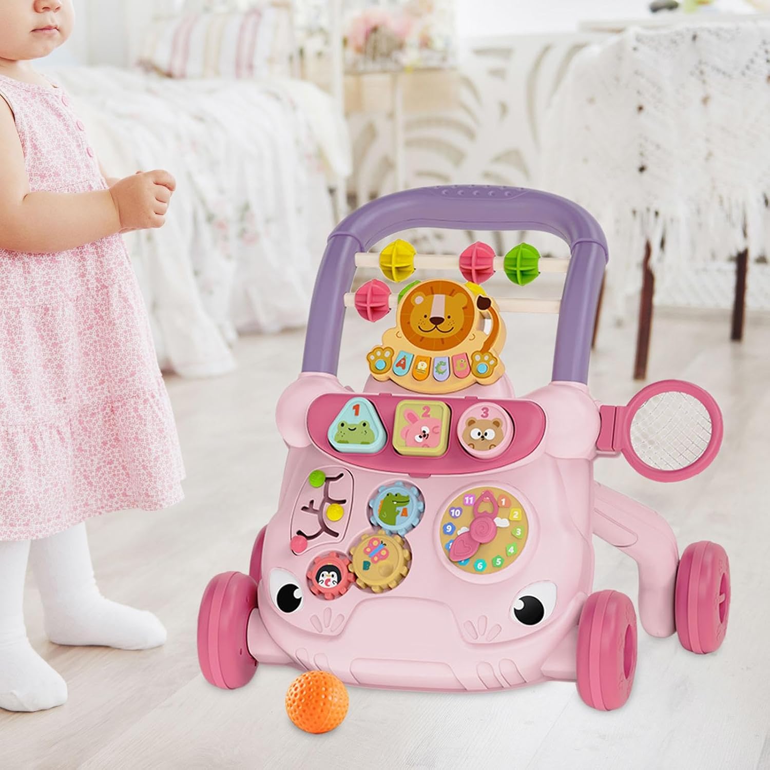 【REGALO IDEALE PER I BAMBINI PIÙ BAMBINI】: questo giocattolo da spingere per bambini è il grande regalo per compleanno, poiché è specificatamente studiato per supportare lo sviluppo del bambino a partire dai 6 mesi. 【GIOCATTOLO EDUCATIVO】: con un pannello di attività pieno di divertimento che include pulsanti, selezionatore di forme, ingranaggi, pulsanti di animali e un gioco di ruolo, ci assicuriamo che il tuo bambino impari tantissimo un sacco. 【SUPPORTO IDEALE PER I DEI TUOI BAMBINI】: Incoraggia il tuo bambino a muovere i , rafforzare il core, acquisire equilibrio e imparare molto con questo centro attività e passeggiate 2 in 1. 【DIVERTIRSI ALL'APPRENDIMENTO】: Attraverso tante attività emozionanti, musica e frasi amichevoli, i più piccoli verranno introdotti alle forme e agli animali. 【DESIGN PENSIERO】: Dotato di ruote strutturate, design con impugnatura facile da impugnare, questo giocattolo per bambini è stato progettato specificamente per far viaggiare i bambini a casa e in viaggio. Dopo una lunga sessione di gioco, puoi rimuovere il pannello dal camminamento per divertirti a sederti.