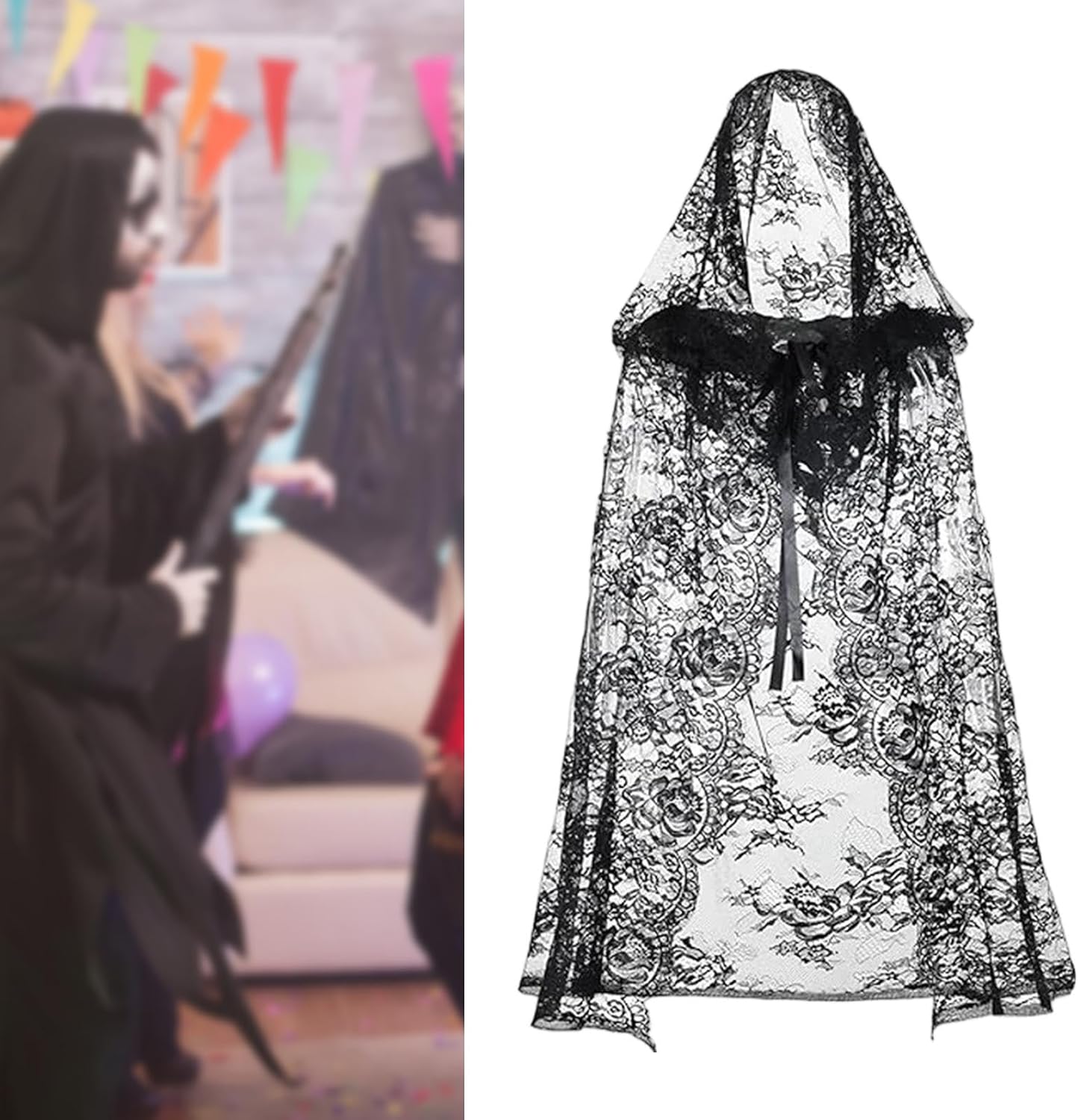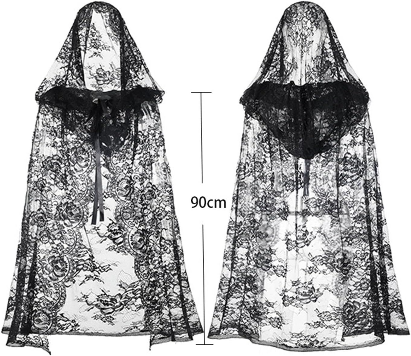 【Moda】Questo mantello in pizzo di Halloween aggiungerà un tocco di moda classica al tuo look generale e porterà il tuo completo di Halloween a un nuovo livello 【Mantello con cappuccio con chiusura a cravatta】Elegante mantello da strega in pizzo, mantello con cappuccio con motivo floreale per feste ed eventi in costume 【Applicazione】Mantello da strega con cappuccio in pizzo, adatto per eventi di Halloween, attività cosplay o feste, aggiungendo un tocco al tuo outfit e lascia un'impressione indimenticabile 【Materiale】L'elegante mantello da strega nero è realizzato in materiale di pizzo, leggero, lavabile in lavatrice e garantisce un accessorio affidabile per il costume da anni 【Caratteristica】 Il mantello fluido in tulle di pizzo con un design ampio e un fiocco sul collo consente movimenti illimitati e rende la tua esperienza di Halloween più piacevole