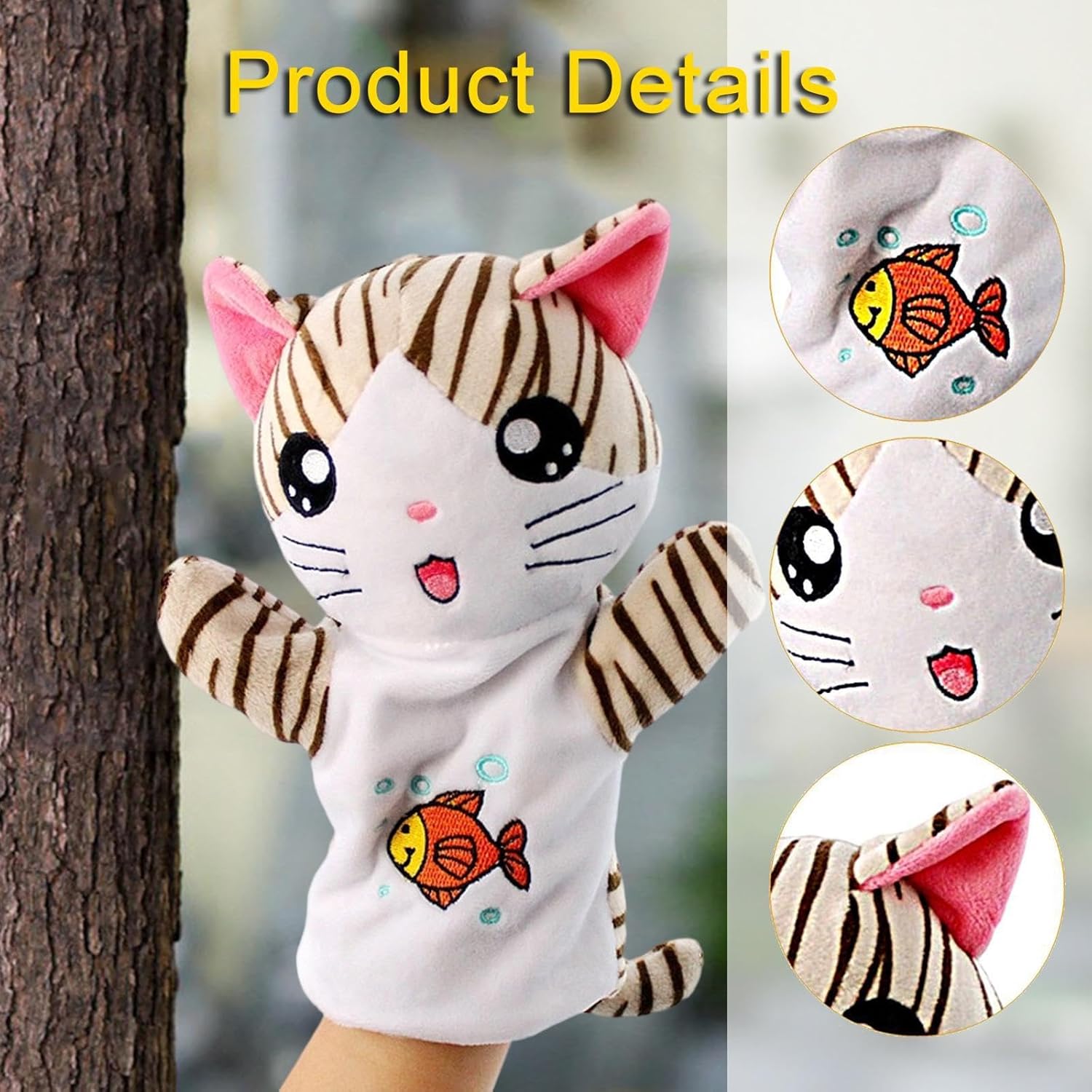 【Giocattolo educativo】: il peluche a forma di animale per bambini piccoli migliora il divertimento interattivo incoraggiando fantasioso e il gioco di ruolo creativo, aiutando i bambini a esprimere e a sviluppare capacità comunicative 【Materiale di qualità】: il pupazzo di peluche è realizzato con materiali di peluche di qualità, morbidi, delicati sulla pelle e comodi da indossare a lungo, garantendo durata e una piacevole esperienza tattile 【Dimensioni】: Giocattolo a forma di marionetta a forma di gatto di dimensioni compatte (circa 24 cm di altezza) con una struttura leggera, che lo rende facile da manipolare per le manine dei più piccoli ed è ideale come regalo festivo 【Design carino】: adorabile burattino da mano per bambini con un design a cartone animato con grandi occhi vivaci, orecchie rosa e un aspetto peluche per attirare immediatamente l'attenzione dei bambini e portare gioia durante il gioco 【Materiale didattico precoce】: peluche funge da strumento educativo per l'asilo nido, stimolando l'immaginazione e la creatività attraverso la narrazione e attività didattiche interattive