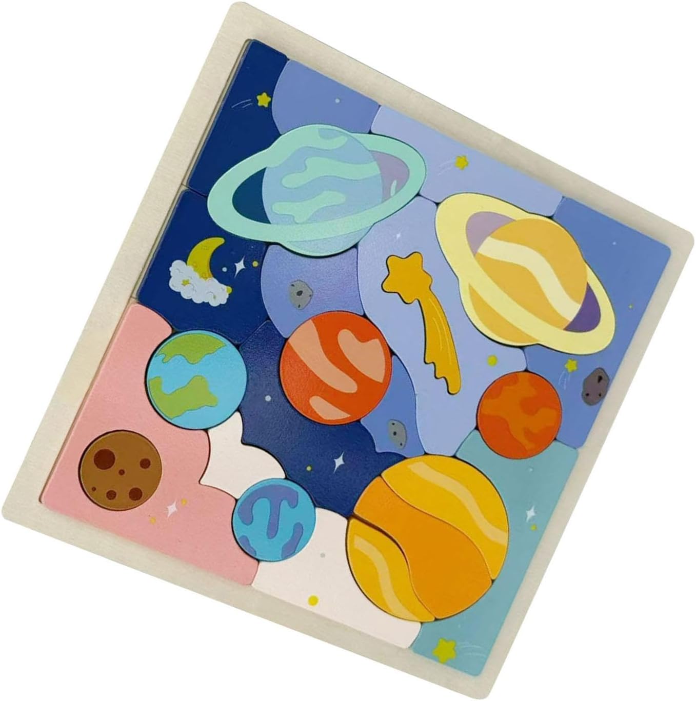 【Materiale】: Questo puzzle è realizzato in legno di qualità che resiste al gioco frequente mantenendo una lunga durata 【Puzzle educativi per bambini】: questo giocattolo didattico prescolare è un'attività educativa divertente che consente ai bambini di 【Dimensioni】: Misura 22,5 cm x 22,5 cm x 1,1 cm / 8,86 pollici x 8,86 pollici x 0,43 pollici, ideale per le mani piccole da afferrare e assemblare facilmente 【Migliora la cognizione】: questo puzzle in legno aiuta a sviluppare la coordinazione occhio-mano dei bambini, le capacità di problem solving e il pensiero spaziale 【Design divertente】: presenta otto pianeti del solare, aiutando i bambini a conoscere lo spazio in modo coinvolgente e pratico